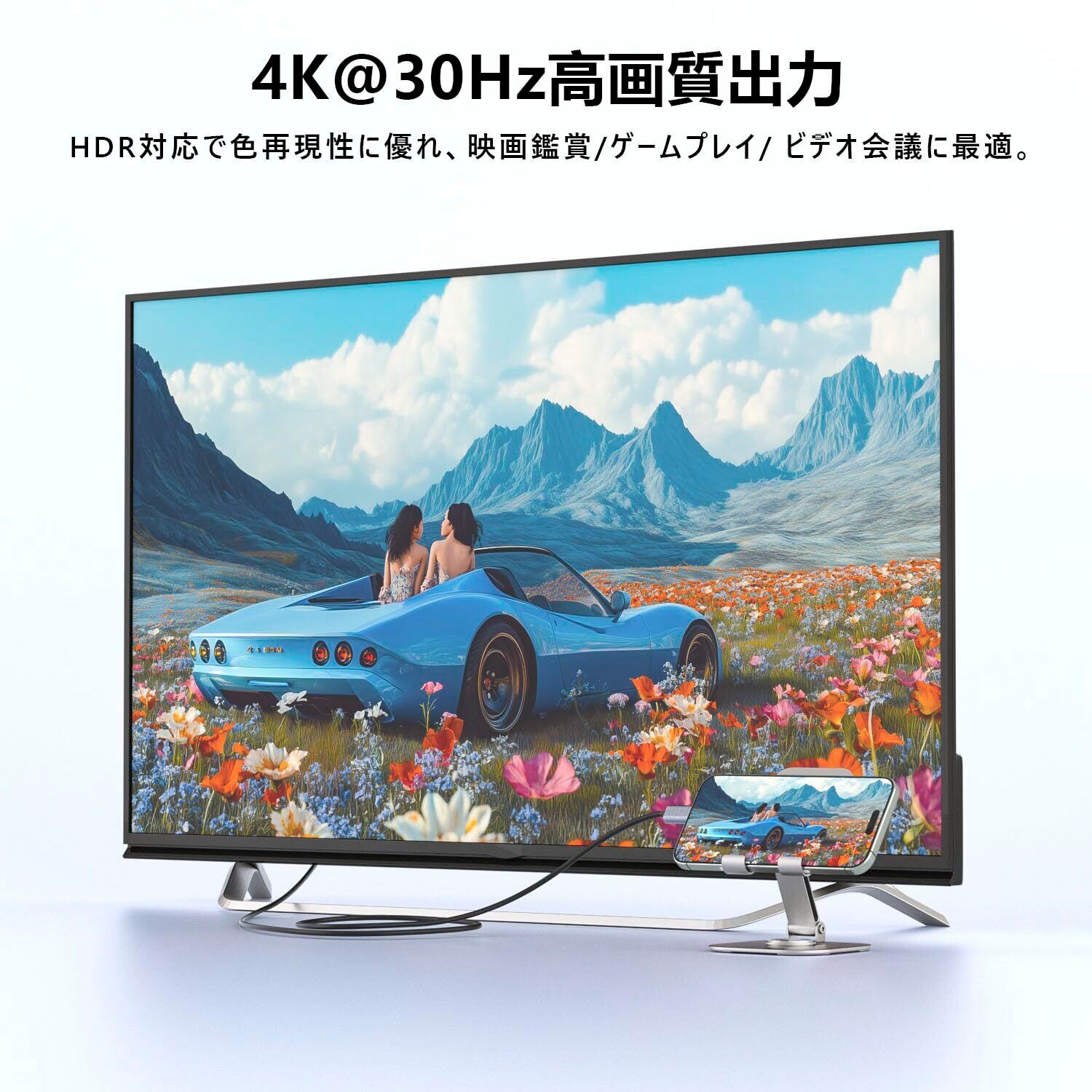 最大解像度4K@30Hzに対応しているため、映画やプレゼン資料を高画質で楽しむことができます。クリアでシャープな映像は、ビデオ会議やプレゼンテーションの効果を引き立て、より良いコミュニケーションを実現します。