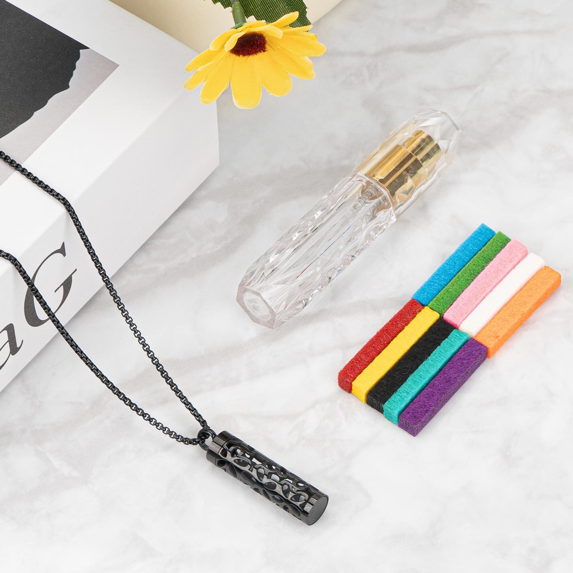 SHIDOW エッセンシャルオイルネックレス 女性用 アロマテラピーネックレスディフューザー レディース/メンズ フレグランスディフューザー ペンダント 誕生日 クリスマス バレンタインデーギフト (ブラック)
