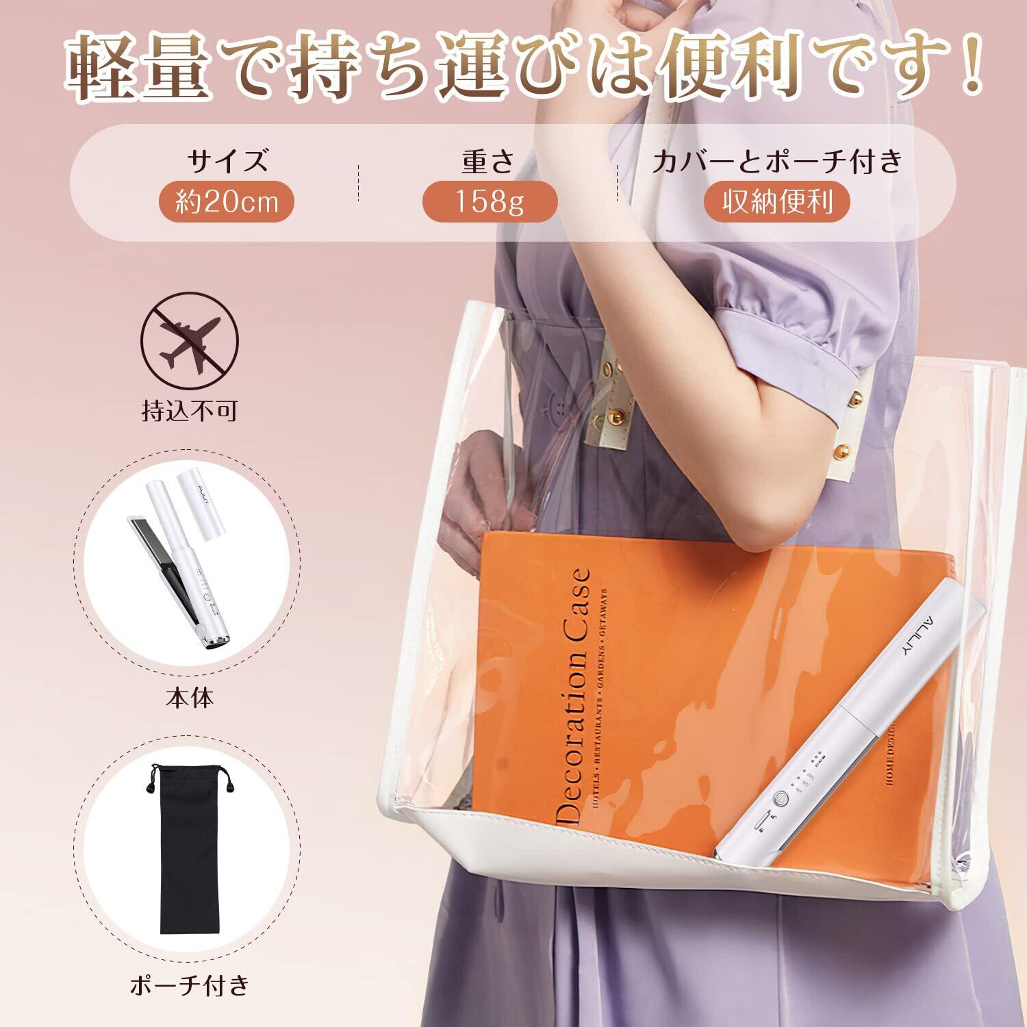 【在庫セール】ヘアアイロン コードレス ストレート ミニ ヘアアイロン usb充電式 2way カール&ストレート 3段階温度設定可能 ワイヤレス 前髪 軽量 カバー付き 日本語説明書付き (ホワイト)