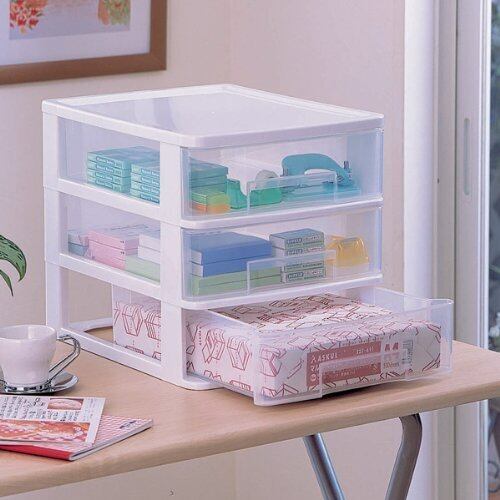 ●家庭にある書類や小物の整理に便利なテーブルチェストです。引出しサイズはA4のクリアフォルダが入ります。