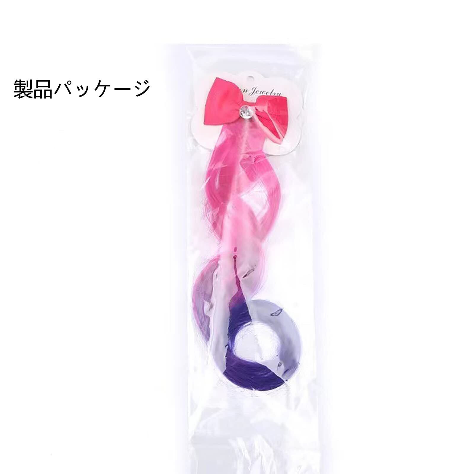 SATPULOT ウィッグ エクステ ヘアエクステ 子供 グラデーション リボン巻きヘアピン ポニーテール つけ毛 カラフル ウィッグ ポイントウィッグ キッズ エクステンション ヘアエクステ ヒップホップ カラフル 髪の毛 付け髪 ワンタッチ キッズ ダンス 発表会 簡単装着