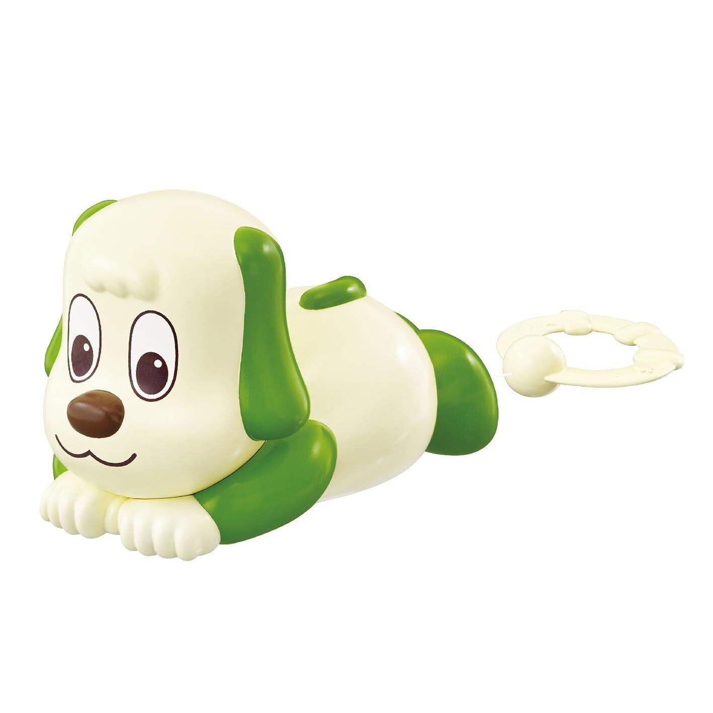 ワンワンとおいかけっこで元気にからだを動かそう! 保護者の方が足の先の黄色いリングを引っ張ってあげてください。ワンワンの背中にタッチすると走り出します。赤ちゃんは動くのが大好き! タッチすると走り出すワンワンをハイハイで追いかけて、遊びながら足腰の発達を促します。