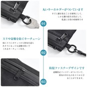 【使用と特徴】クレジットカード、交通系ICカード(ICOCA・PASMOなど)、社員証、免許証などのカード類が入ります。スパイラルコードが伸びますのでセキュリティーゲートに楽にタッチできます。IDカードを使っての入退室管理システムなどにお使いいただけます。高校生や中学生の小銭入れとしてもお使いいただいたり、ランドセルに引っかけて使用したり、子供さんの塾通いの際などに使うカード入れとしてもお使いいただけます。
