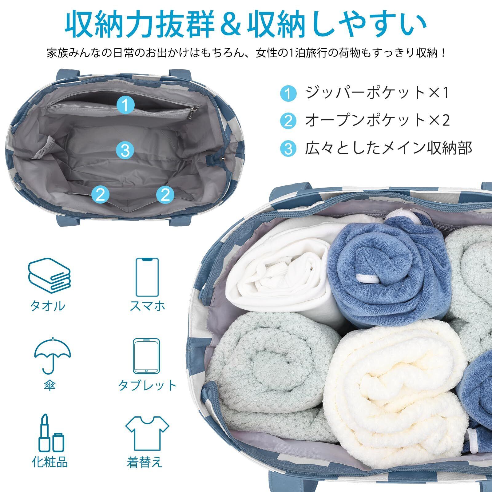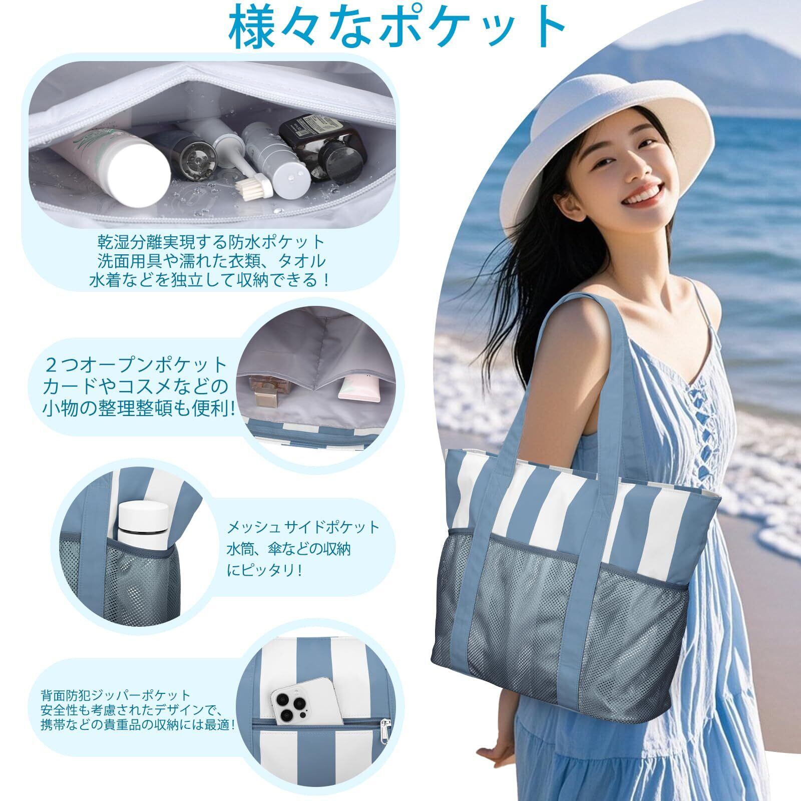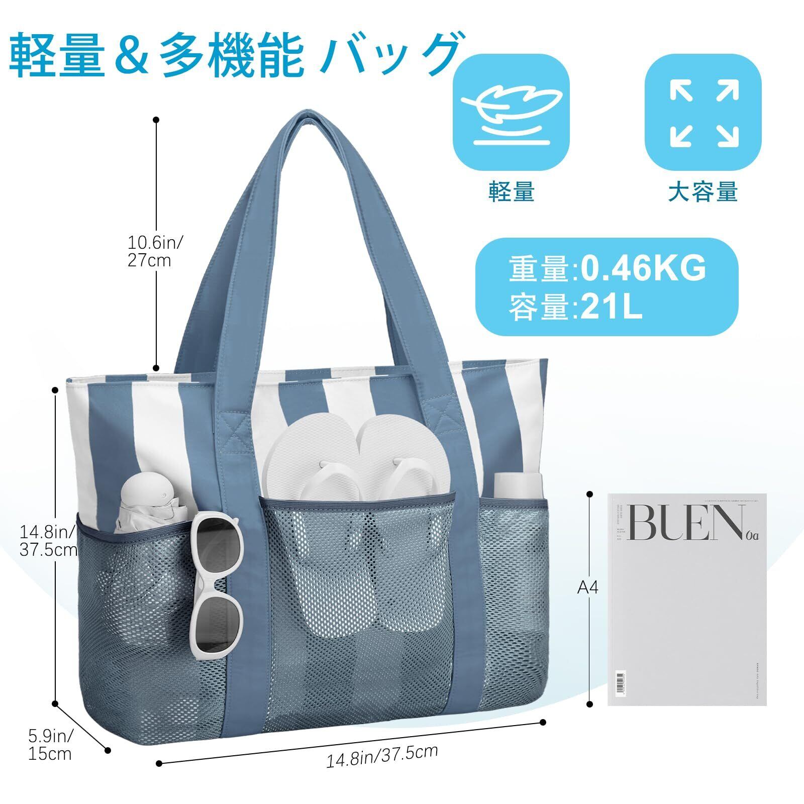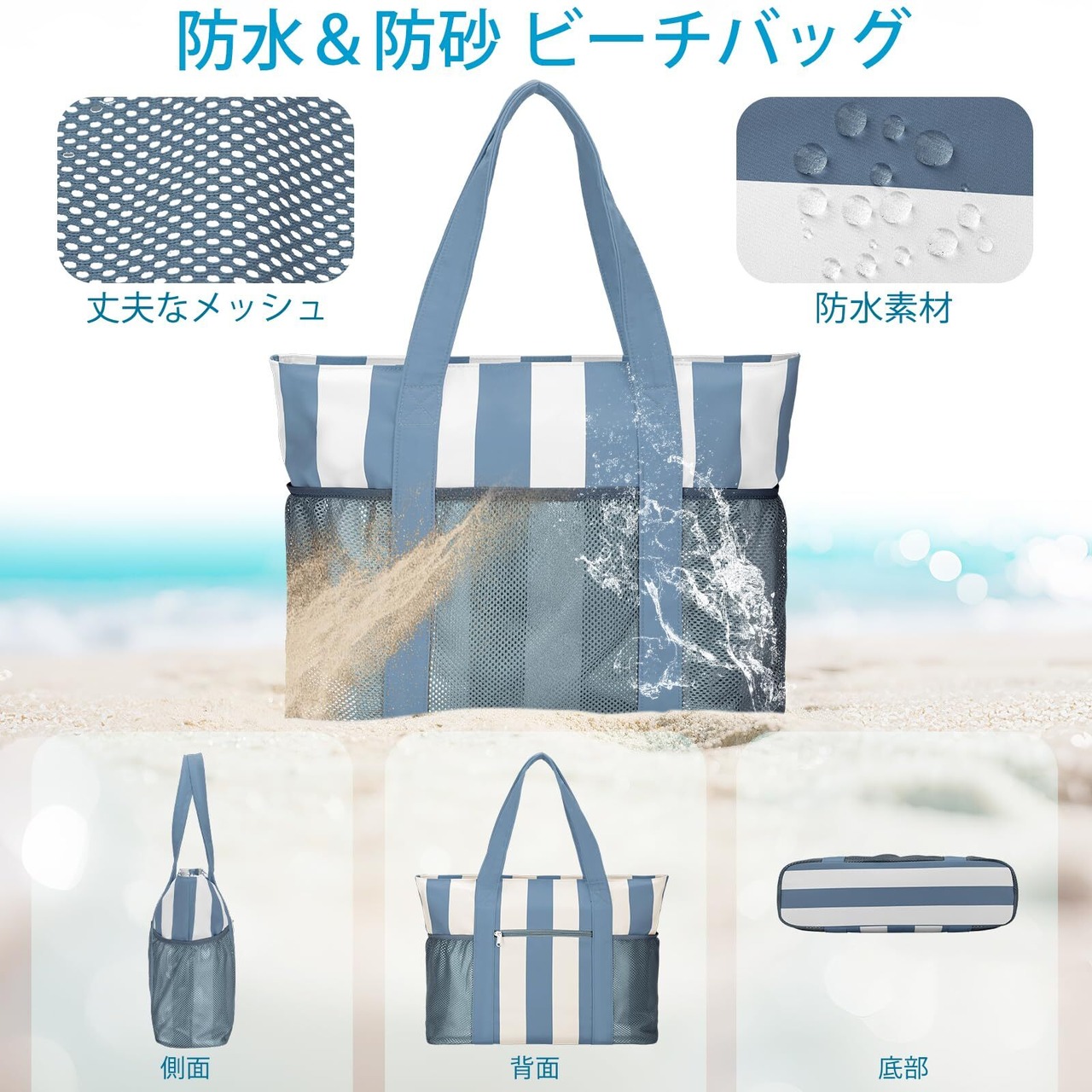 【新着商品】[Vaschy] ビーチバッグ レディース, 折り畳み 防水 超軽量 ファスナー メッシュポケット付き トートバッグ 肩掛け 海辺 温泉 旅行 スポーツ カジュアル