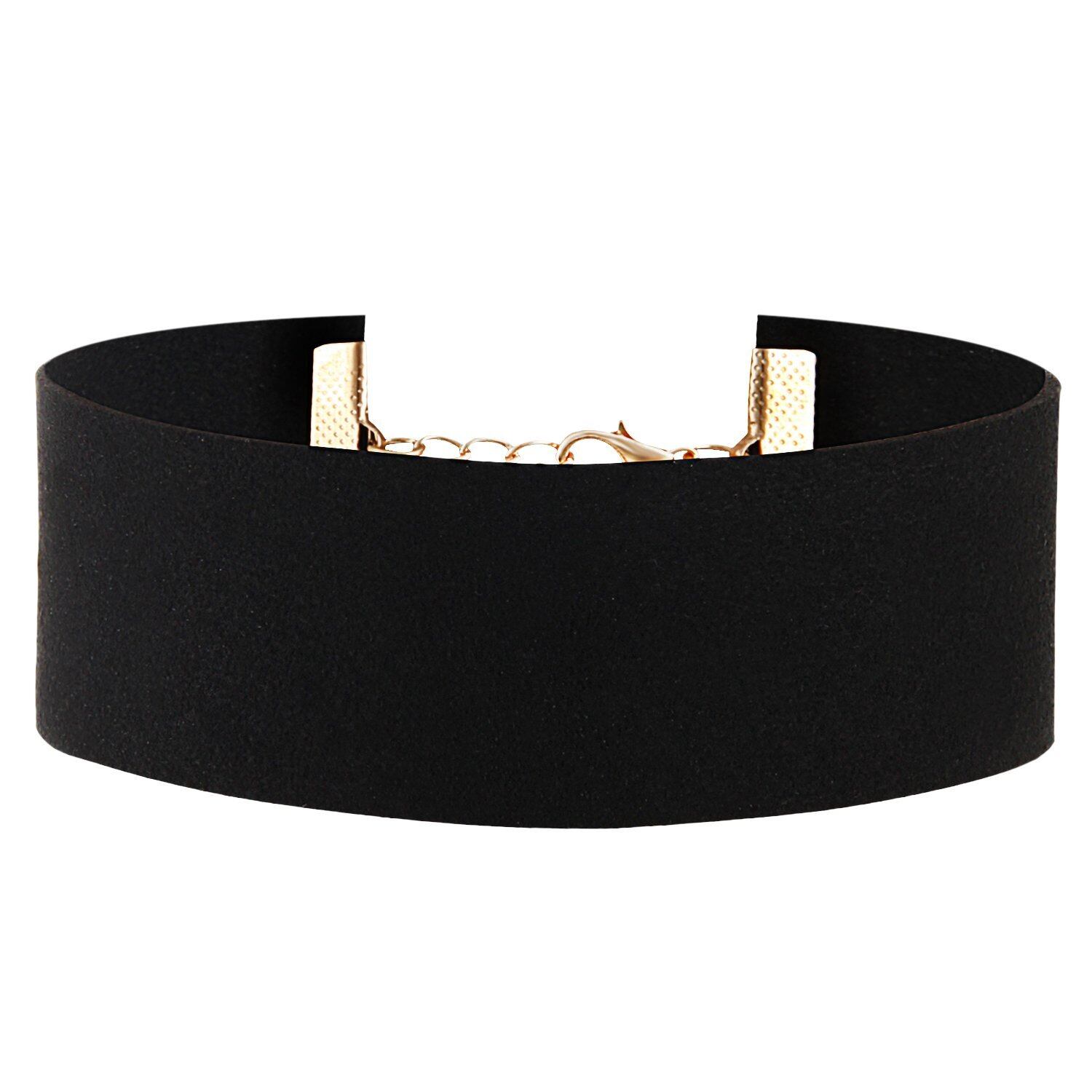 JewelryWe ファション アクセサリー レディース 首輪 ネックレスチョーカー レザー 欧米風 パンク系 可愛い お洒落 [幅]35MM ブラック
