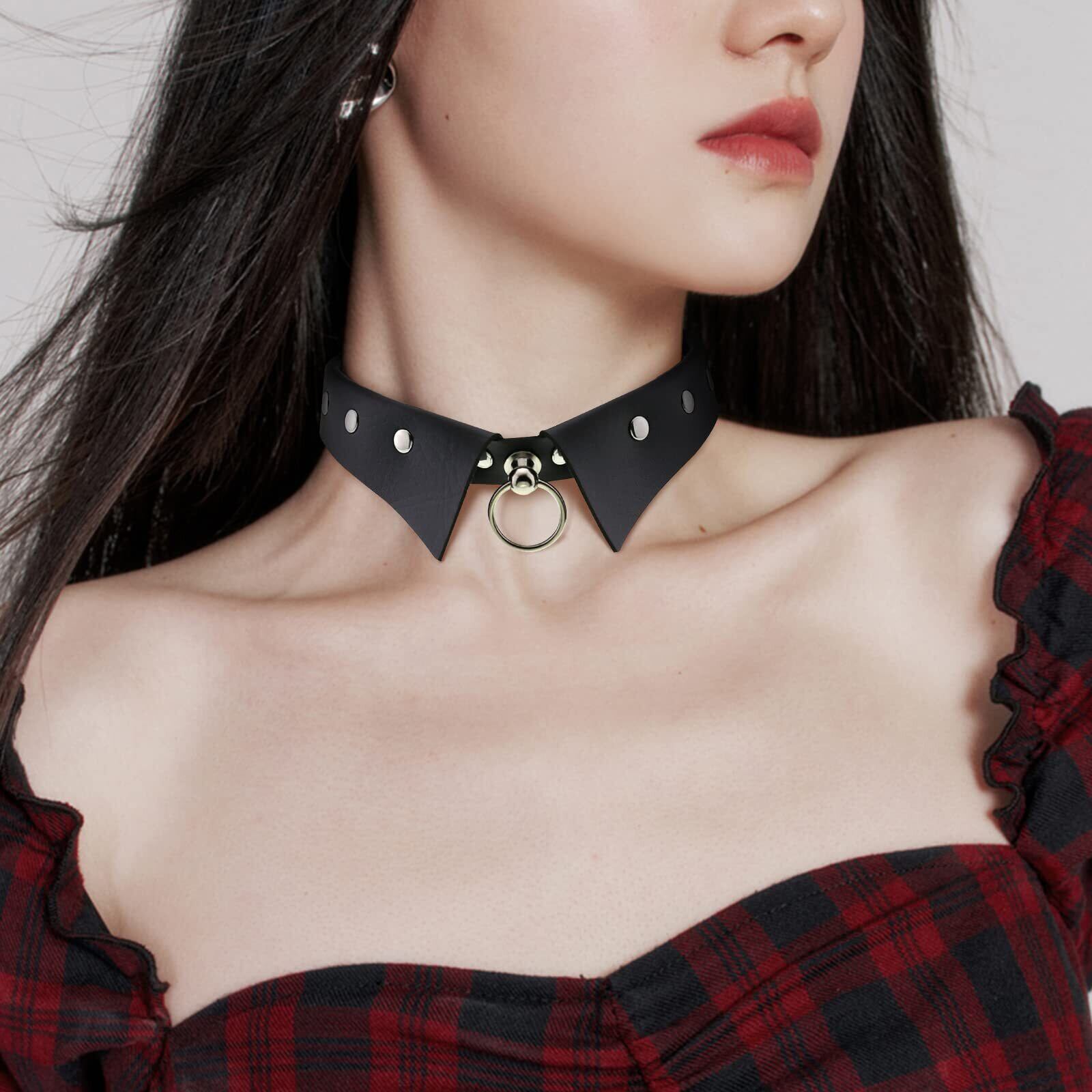 [アヘガオ] チョーカー レディース メンズ 首輪 黒 レザー 合金 原宿系 調節可能 個性 パンク系 ネックレス コスプレ ゴスロリ セクシー choker 人気 ブラック