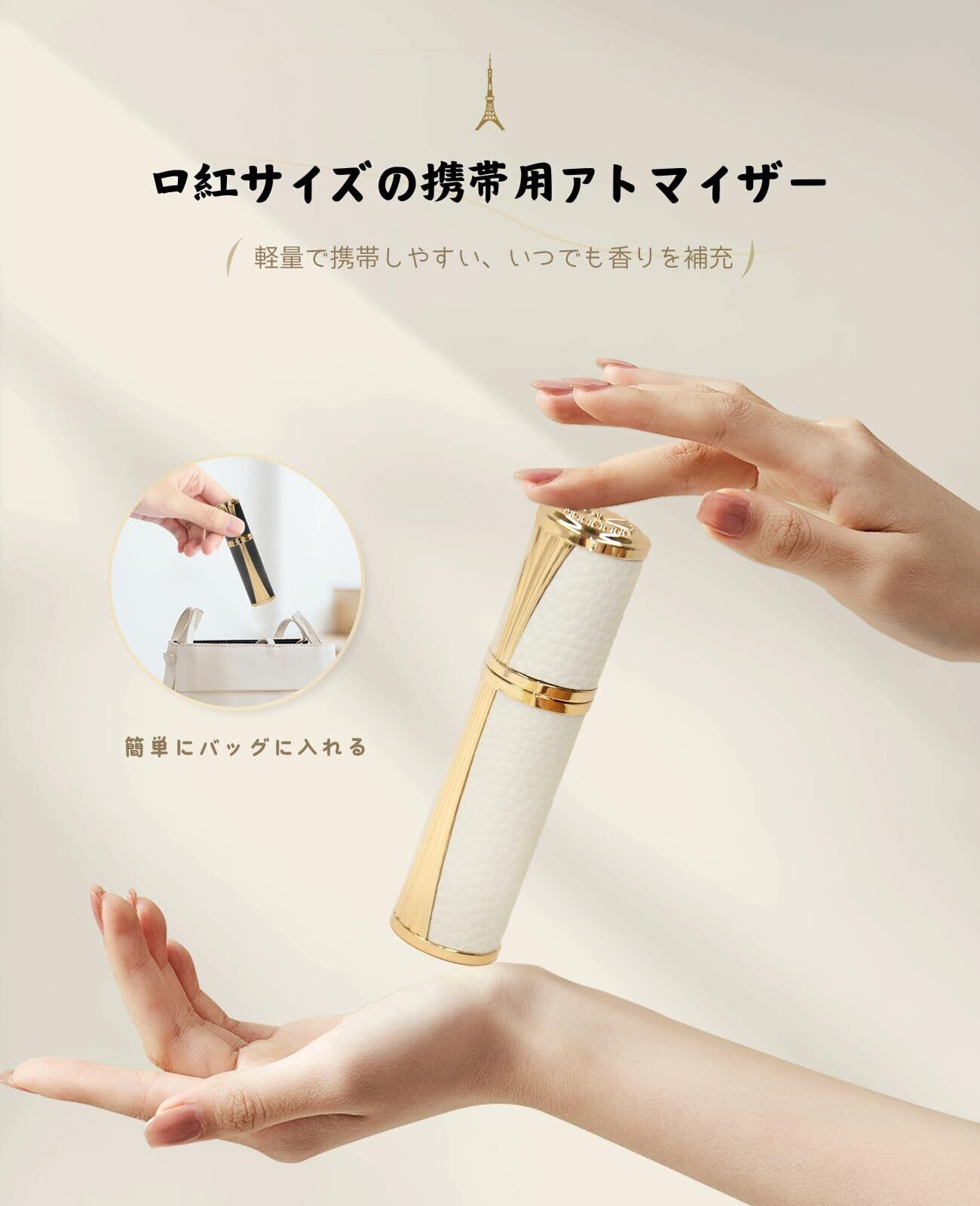 AsaNana 【2024の新型・国内初登場・高級レザーシリーズ】アトマイザー 香水 詰め替え 容器 5ml 携帯用 コンパクト 持ち運び便利 ワンタッチ補充 底部充填 漏れない パフュームスプレー プッシュ式 (アイボリーホワイト)