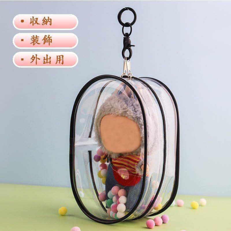 【仕様】大容量 クリア PVC 綿人形痛バッグ+キーホルダー、サイズ:17.2*11.5*6.5CM。