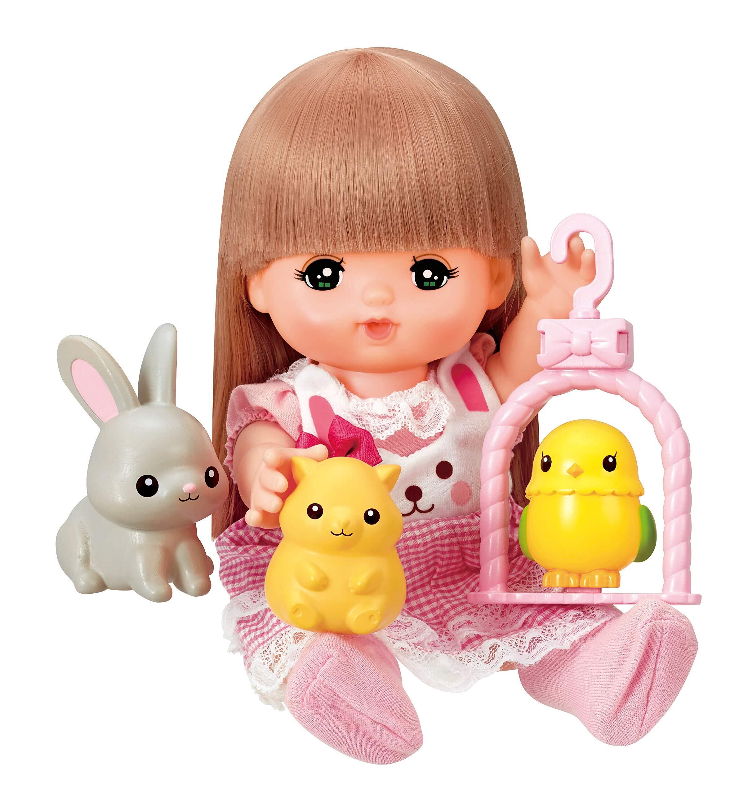 メルちゃんのかわいいペットセット。うさぎ、ハムスター、小鳥のセット。ごはんをあげてお世話してね。