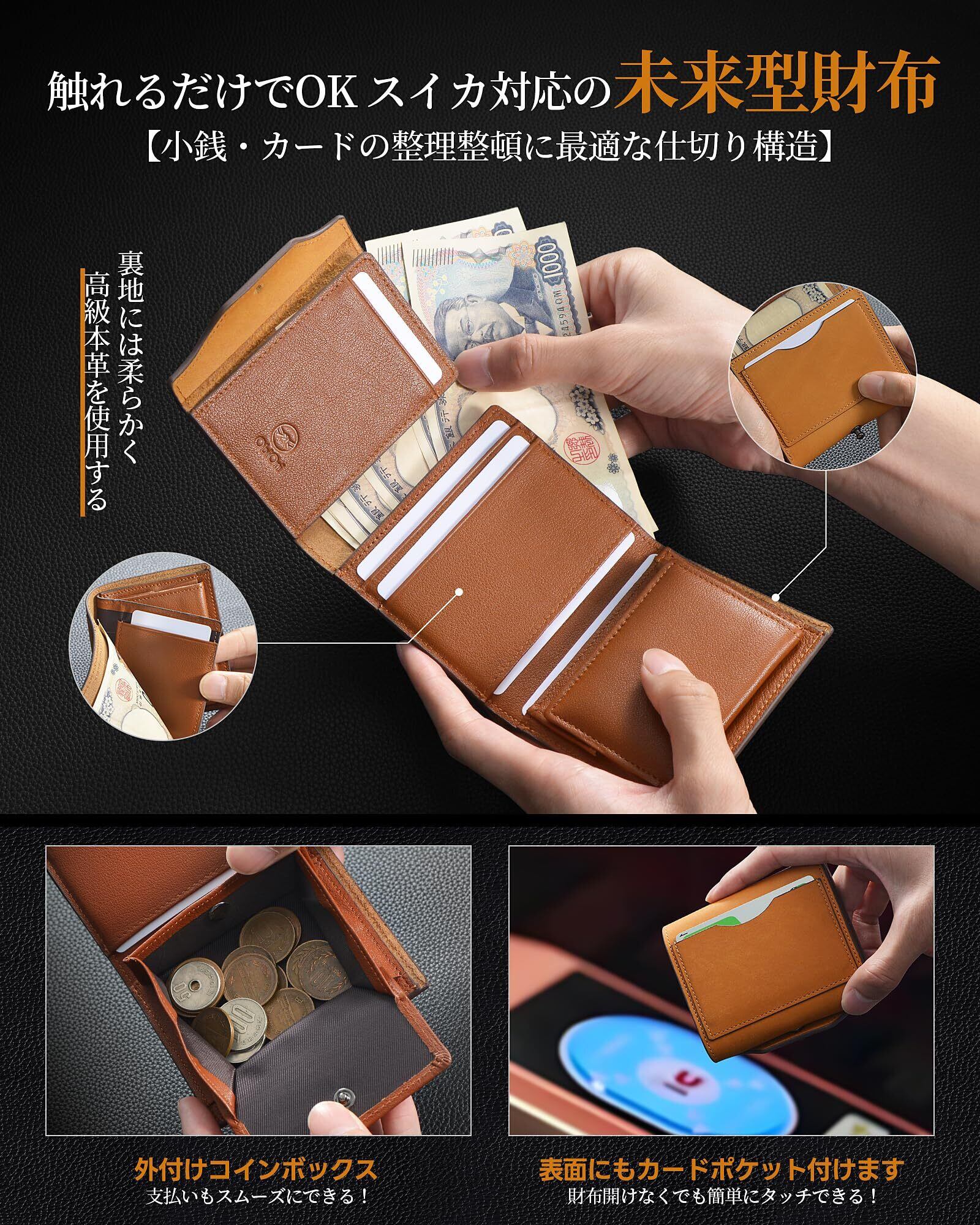 【大容量 財布 メンズ】硬貨15枚・紙幣15枚・カード7枚・Suica1枚を一括収納可能な3つ折り箱状財布。紙幣固定ポケットでズレと角折れを防止。左利きにも右利きにも対応した設計で快適操作を実現。