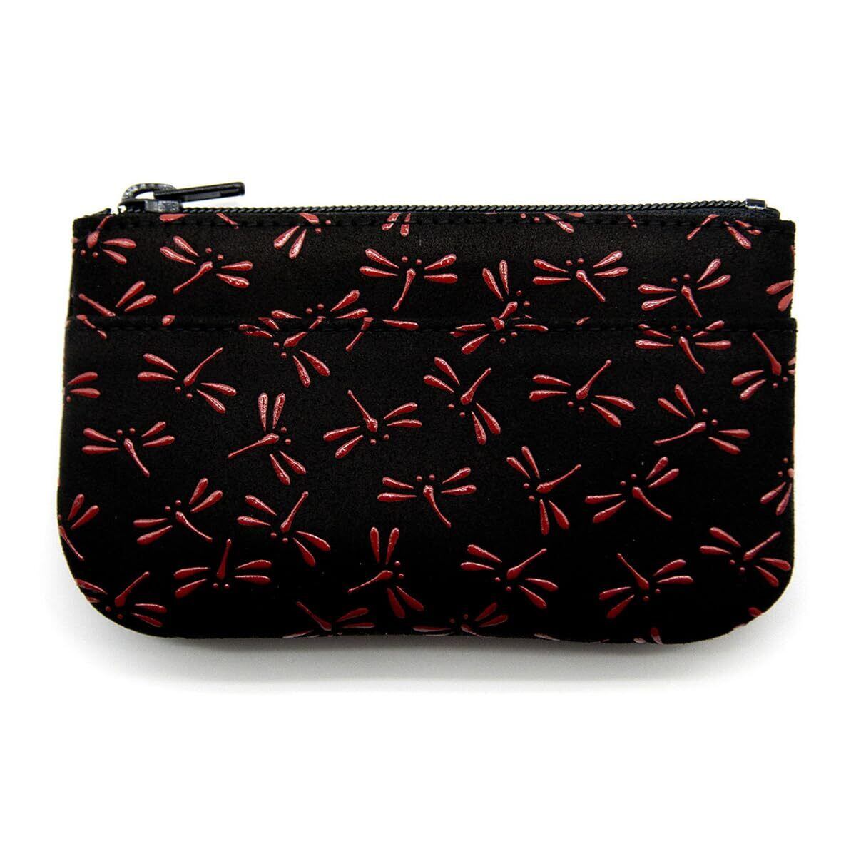 [印傳屋] 印伝 小銭入 コンパクト 鹿革 漆 工芸品 No.1002 ([21-008] 黒地-赤漆 とんぼ)