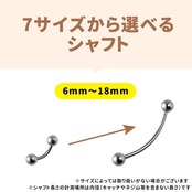 太さ14G,16G,18G シャフト6mm〜18mm ボール2mm〜6mmのバナナバーベルです