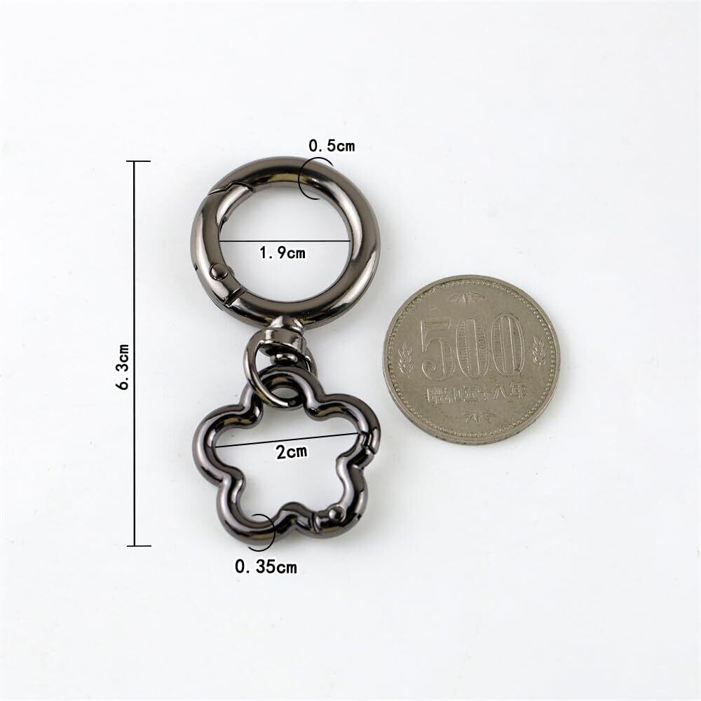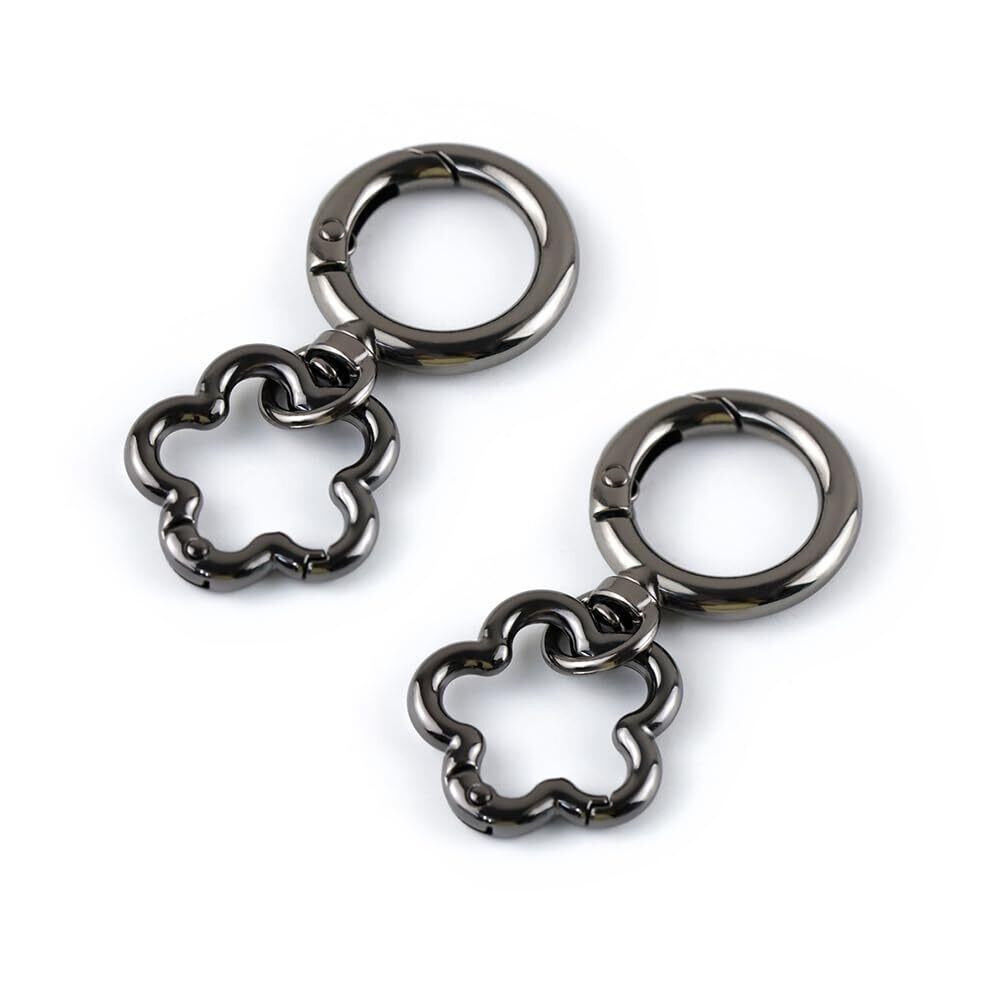 2個入り 金具回転バネ丸型キーホルダー,花形のスナップフック留め,バックパック、財布に最適, 装飾 贈り物 手作り 手芸用品 素材 DIY材料 (ブラック)