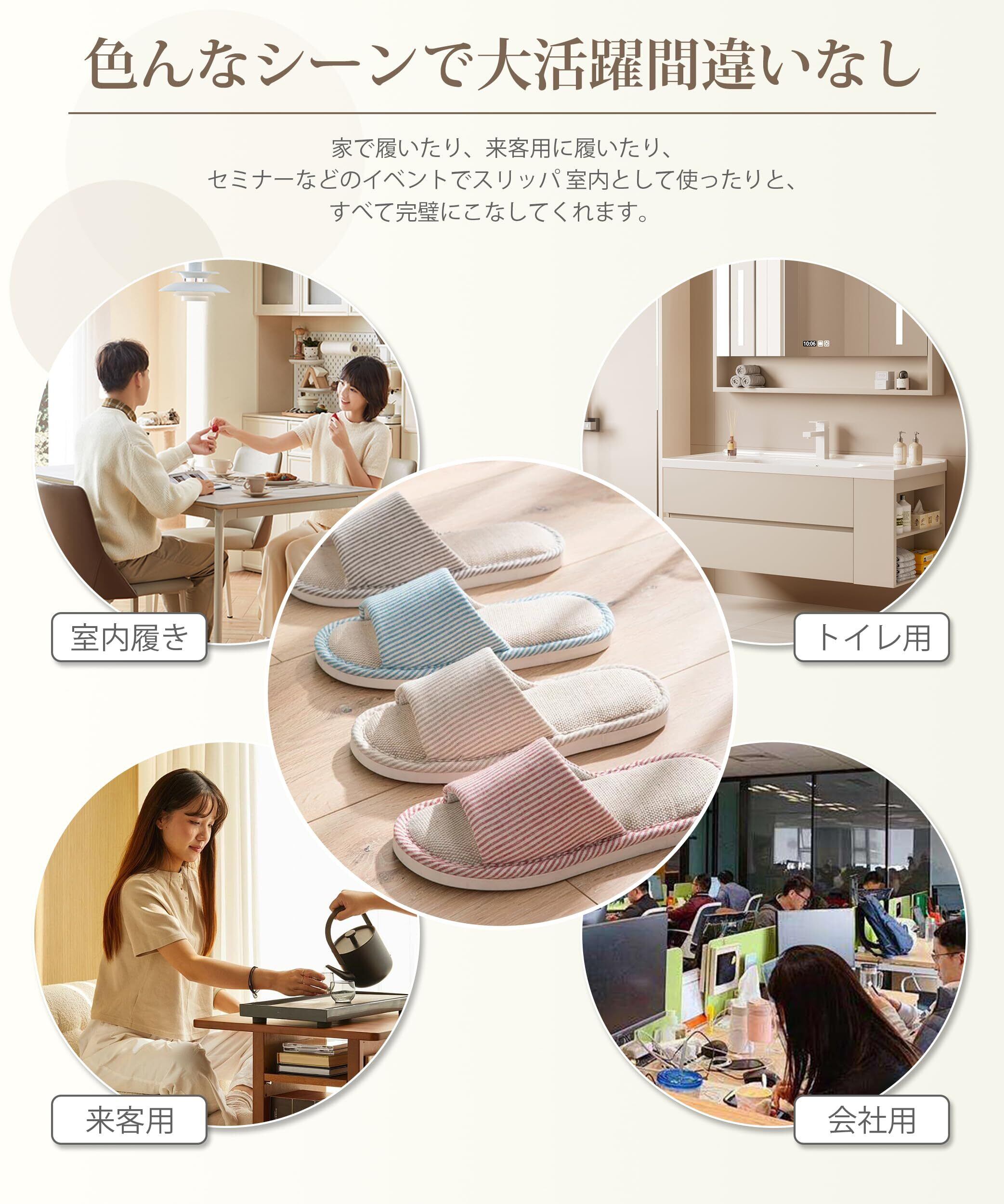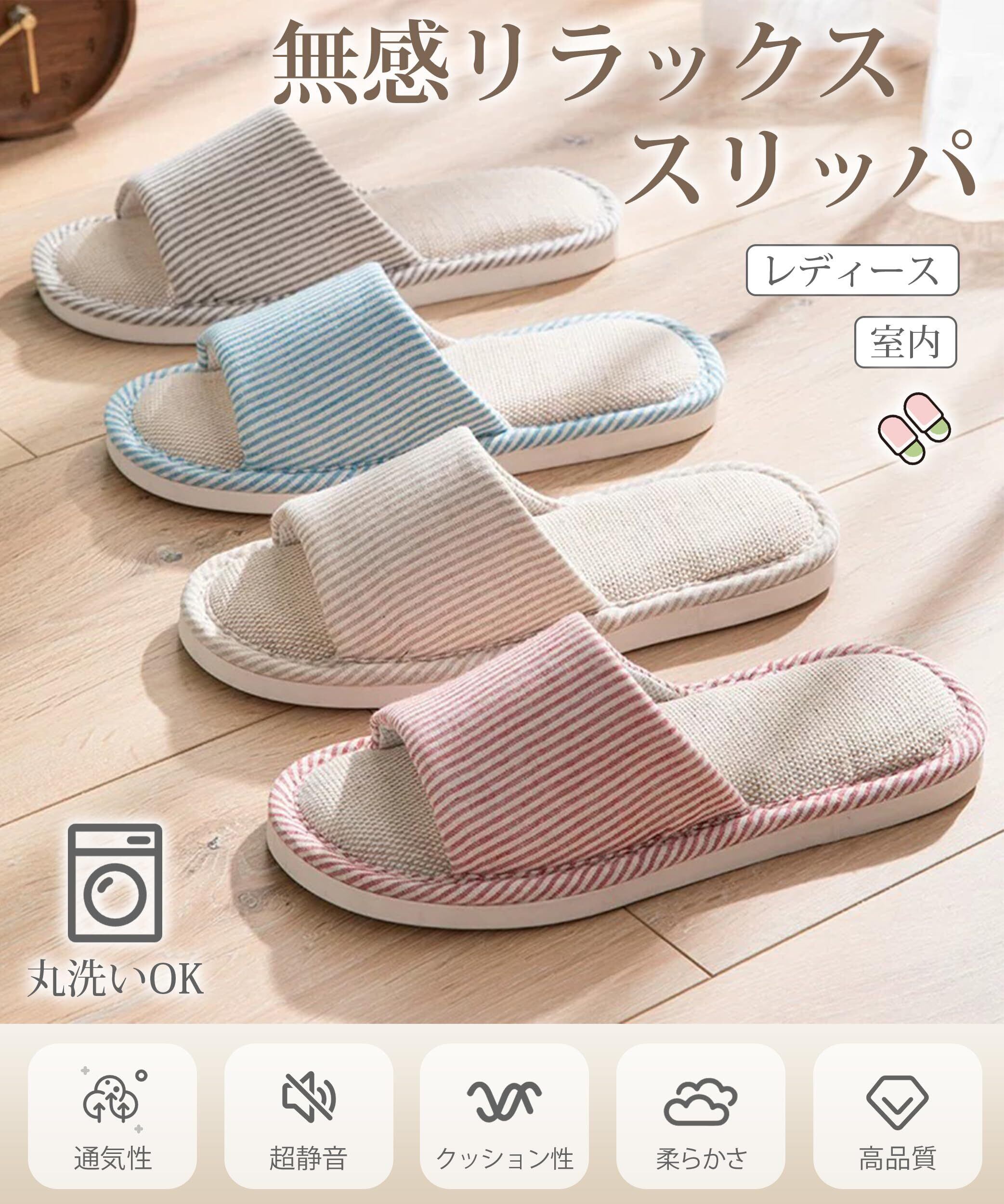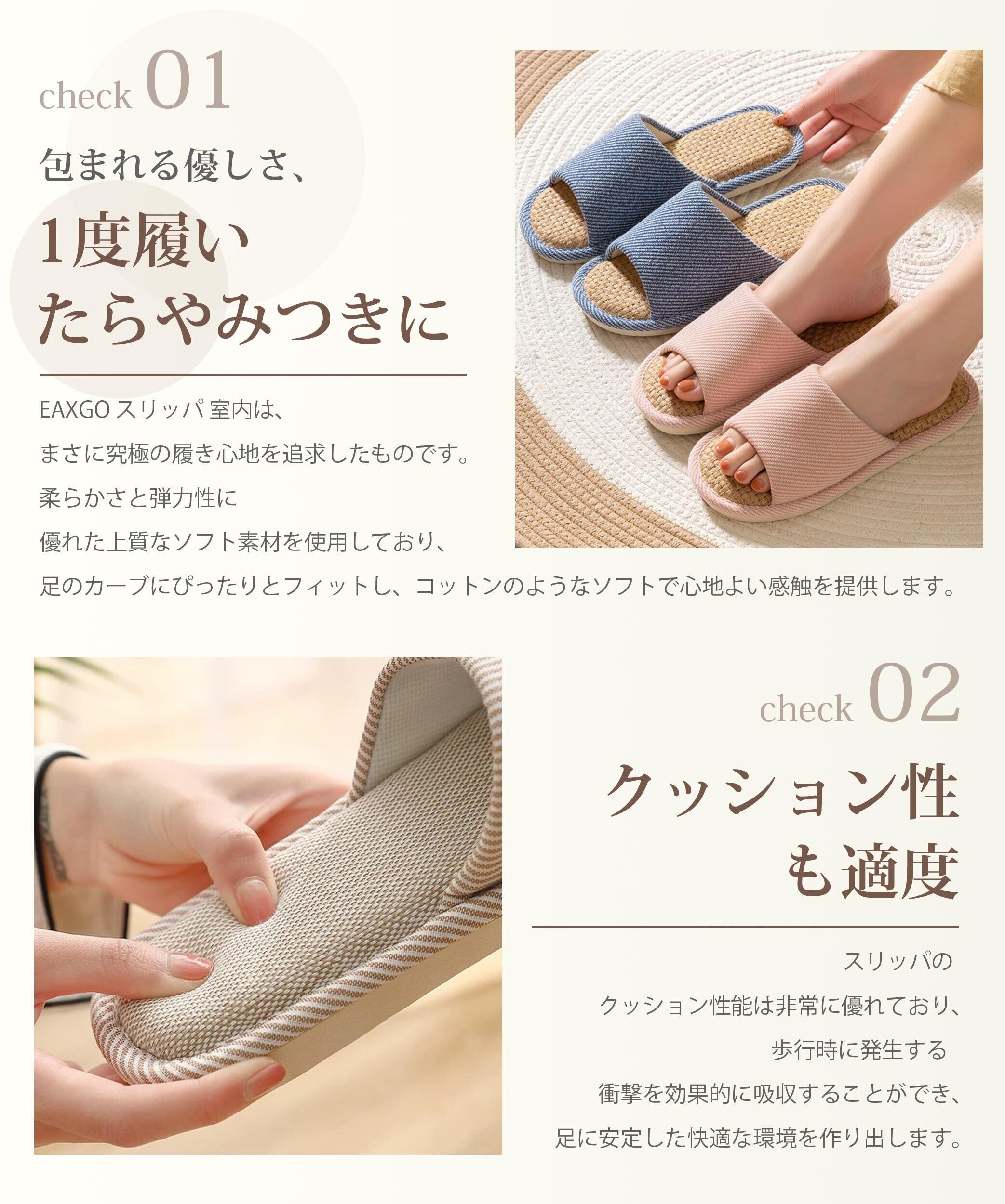 [EAXGO] スリッパ 室内 【1度履いたらやみつきに・静音UP・足うらフィット】 ルームシューズ サンダル 歩きやすい 前開き 軽量 麻 滑り止め おしゃれ 洗える ルームスリッパ 室内履き 夏用