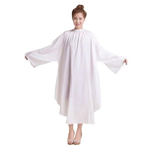 [HANA] 散髪用ケープ カットクロス 袖付しわ加工 ケープ 散髪 マント 美容室 理容室 大きい椅子対応 マジックテープ 美容院 プロ用 大人 子供 ヘアサロン セルフカット セルフカラー (ホワイト)
