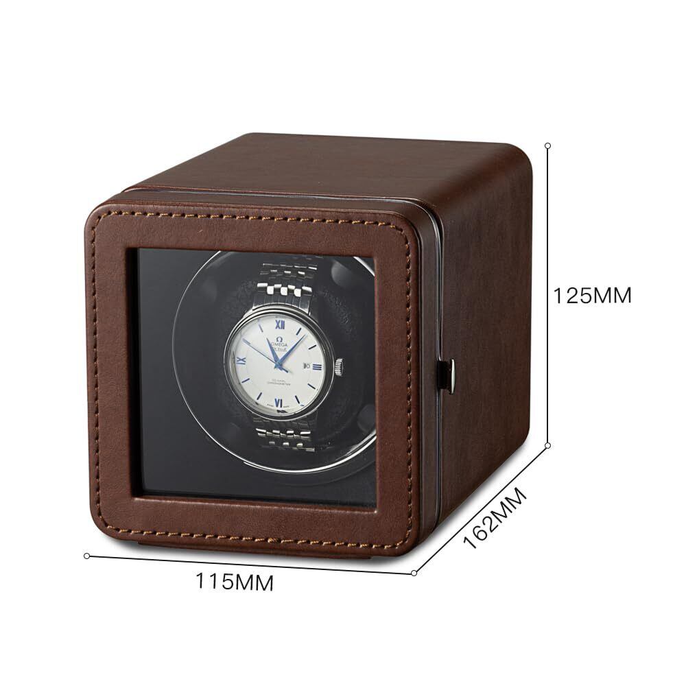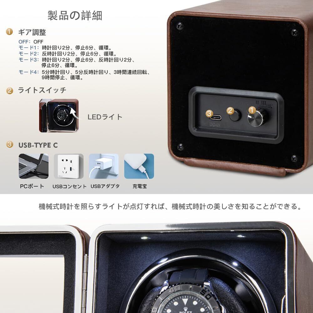 ワインディングマシーン ワインダー 腕時計 自動巻き上げ機 日本製 マブチモーター ウォッチワインダー 自動巻き時計 新型の腕時計自動巻き上げ機 ケース LEDライト付き、4つの回転モード 1本巻き (ブラウン-150F)