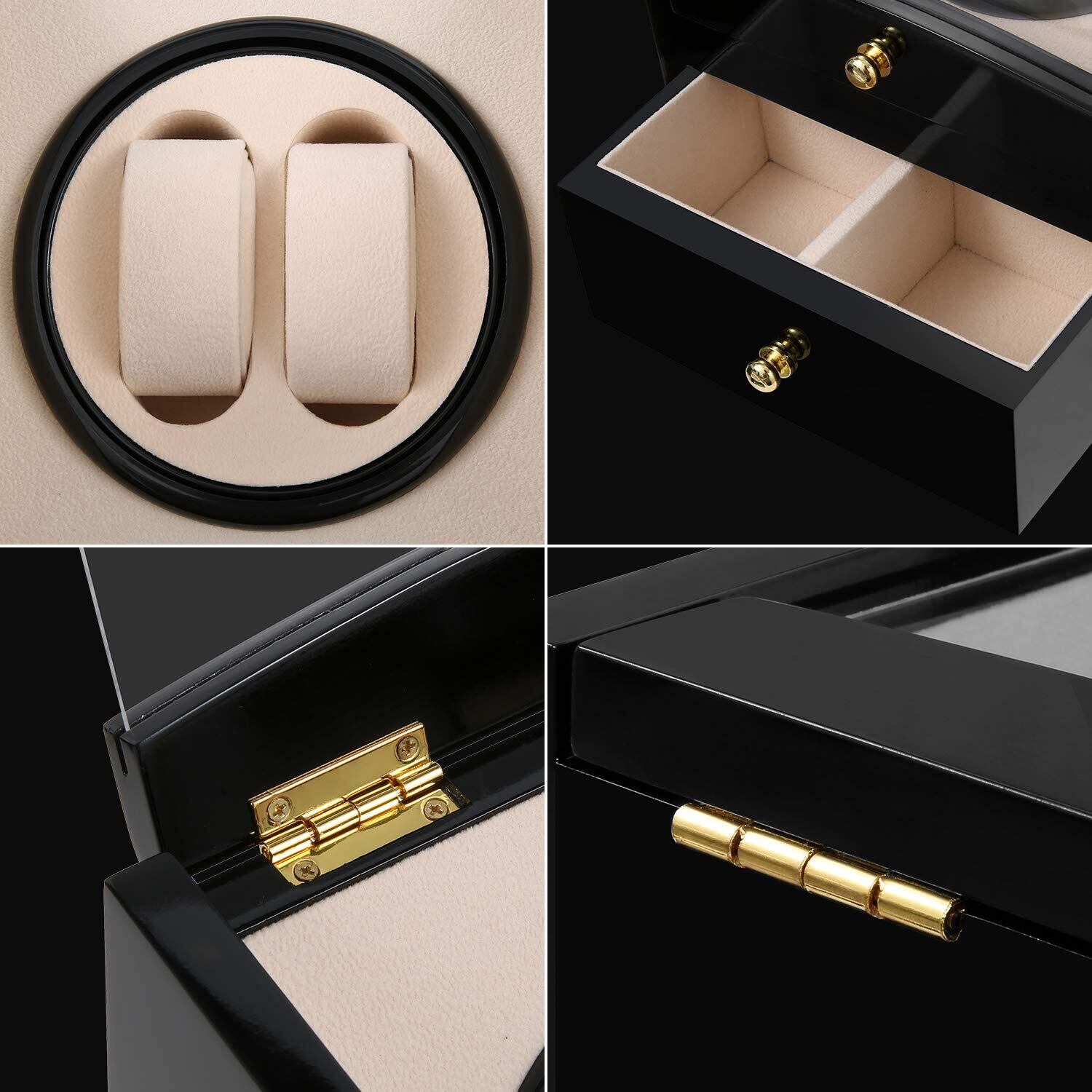 ワインディングマシーン(2+2本巻き) ウォッチワインダー 自動巻き時計ワインディングマシーン 日本製 マブチモーター 設計 腕時計自動巻き上げ機 男女の腕時計は全部使えます(ブラック ピアノ鏡面仕上)
