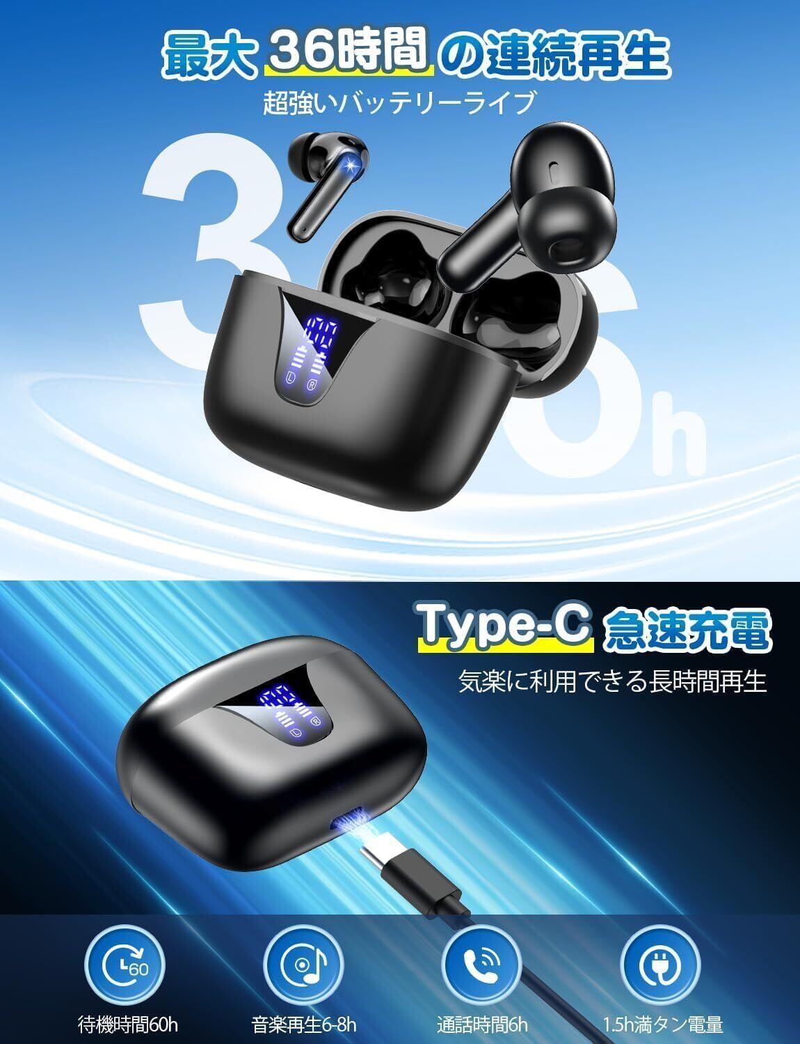 【在庫処分】イヤホン bluetooth ワイヤレスイヤホン【2025業界標準を再定義するモデル】A1ワイヤレス 自動ペアリング タッチコントロール Type-C充電 IPX7防水 LEDディスプレイ表示 AAC/SBC マイク付き ハンズフリー通話 音量調整 小型/軽量