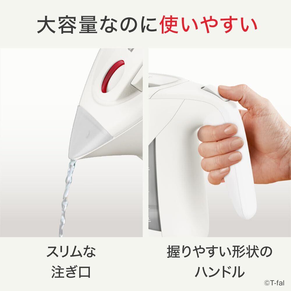 ティファール 電気ケトル 1.2L 大容量 転倒お湯もれロック 「ジャスティン ロック ホワイト」 省スチーム設計 KO5901JPA