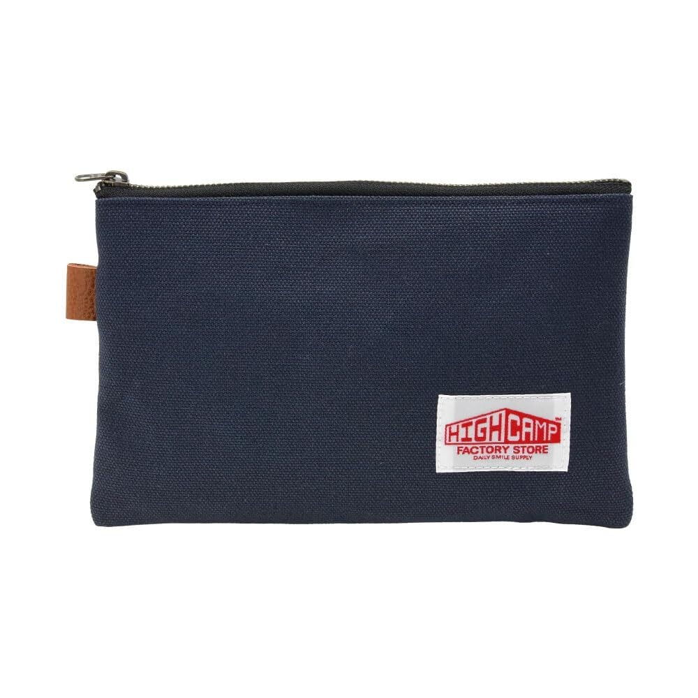【在庫処分】HIGHCAMP マルチポーチ 倉敷帆布 バッグインバッグ SSサイズ 帆布 マスクケース 本革 整理 通帳入れ パスポートケース かわいい おしゃれ 書類バッグ 小物収納 【カラー:紺 】