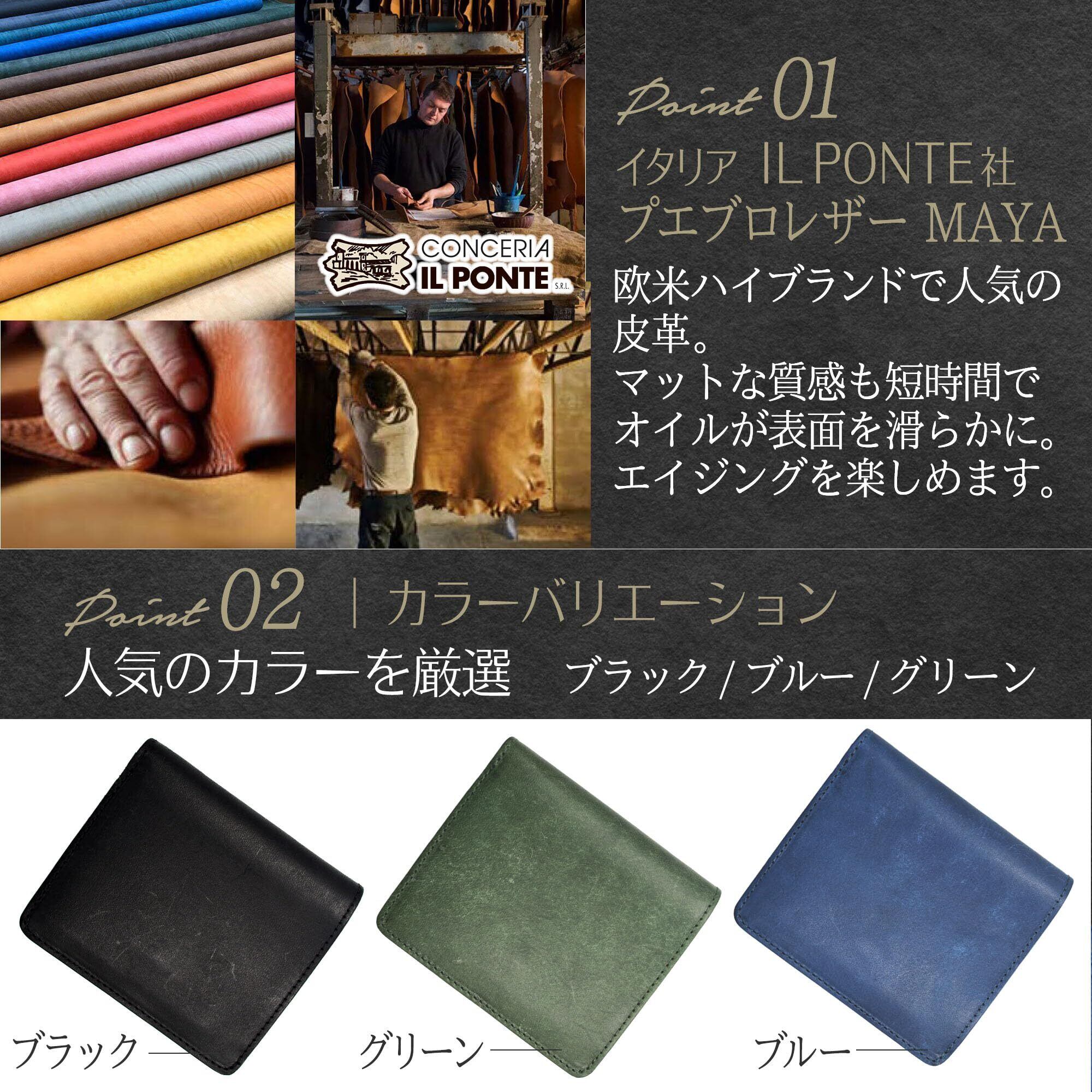 【 イタリア トスカーナ州で生産されたブランド皮革】皮革はイタリア IL PONTE社「MAYA」。世界三大皮革であるイタリアンレザーの中でも最高級とされる イタリア トスカーナ州で生産されたブランド皮革です。伝統的な製法を忠実に守り、高品質の植物タンニン鞣し革として生産された逸品。熟練した 職人 の手でひとつひとつ丁寧に仕上げられた革だから実現できた、上質な 財布 です。 プエブロ MAYA は厳選された原皮を伝統的な製法でいくつもの工程を経て製作されます。当初はマットでなめらかさはありませんが、使い込む事で浸透しているオイルが表面を滑らかにします。比較的短時間で表面はなめらかになり、深みのあるエイジングを楽しむことができます。2022年2月プエブロレザーからMAYAに名称変更されました。