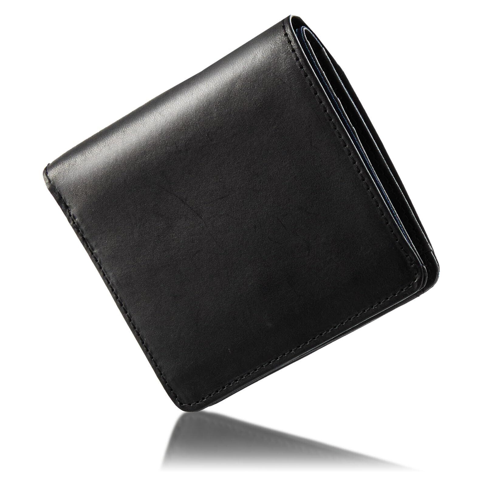【在庫セール】[エクスビータ] 財布 メンズ 二つ折り 本革 【 薄く 小さく かさ張らない ミニ財布 】イタリア プエブロレザー 薄型 コンパクト スキミング 防止 (MAYA(ブラック))
