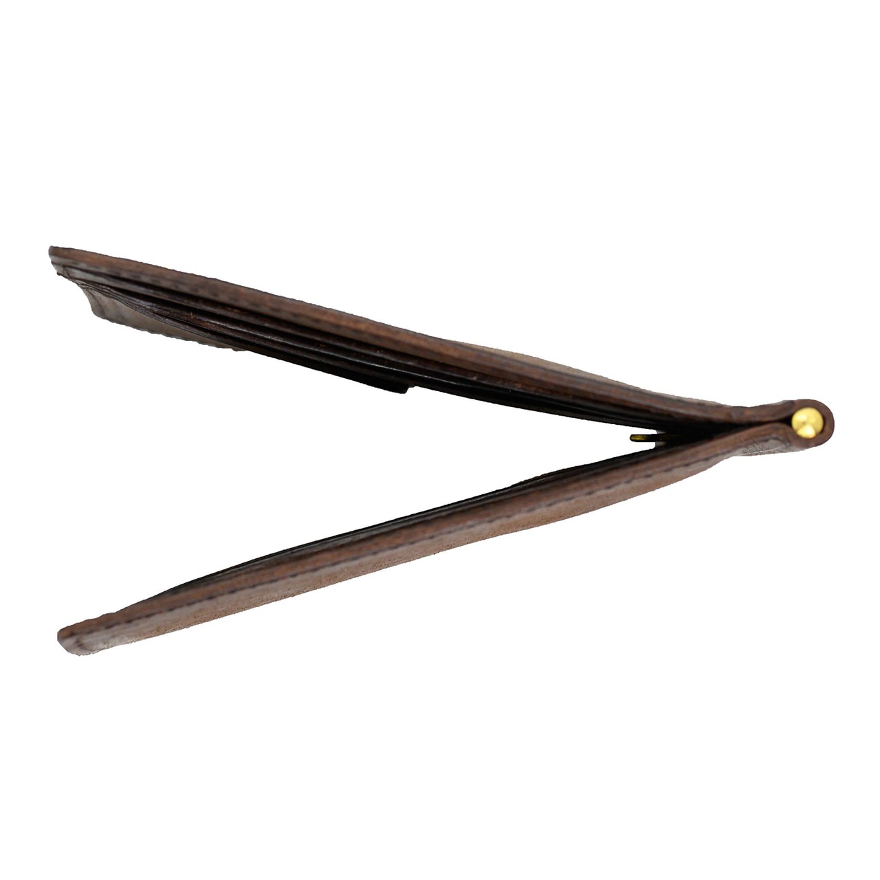 シンプルなデザインながら、最大で10枚のお札やカードをしっかりとホールドできます。クリップ部分と革のバンドで簡単にお札を固定でき、必要な時にすぐに取り出せる使い勝手の良さが魅力です。ポケットにスッと収まるサイズで、日常使いにも最適です。