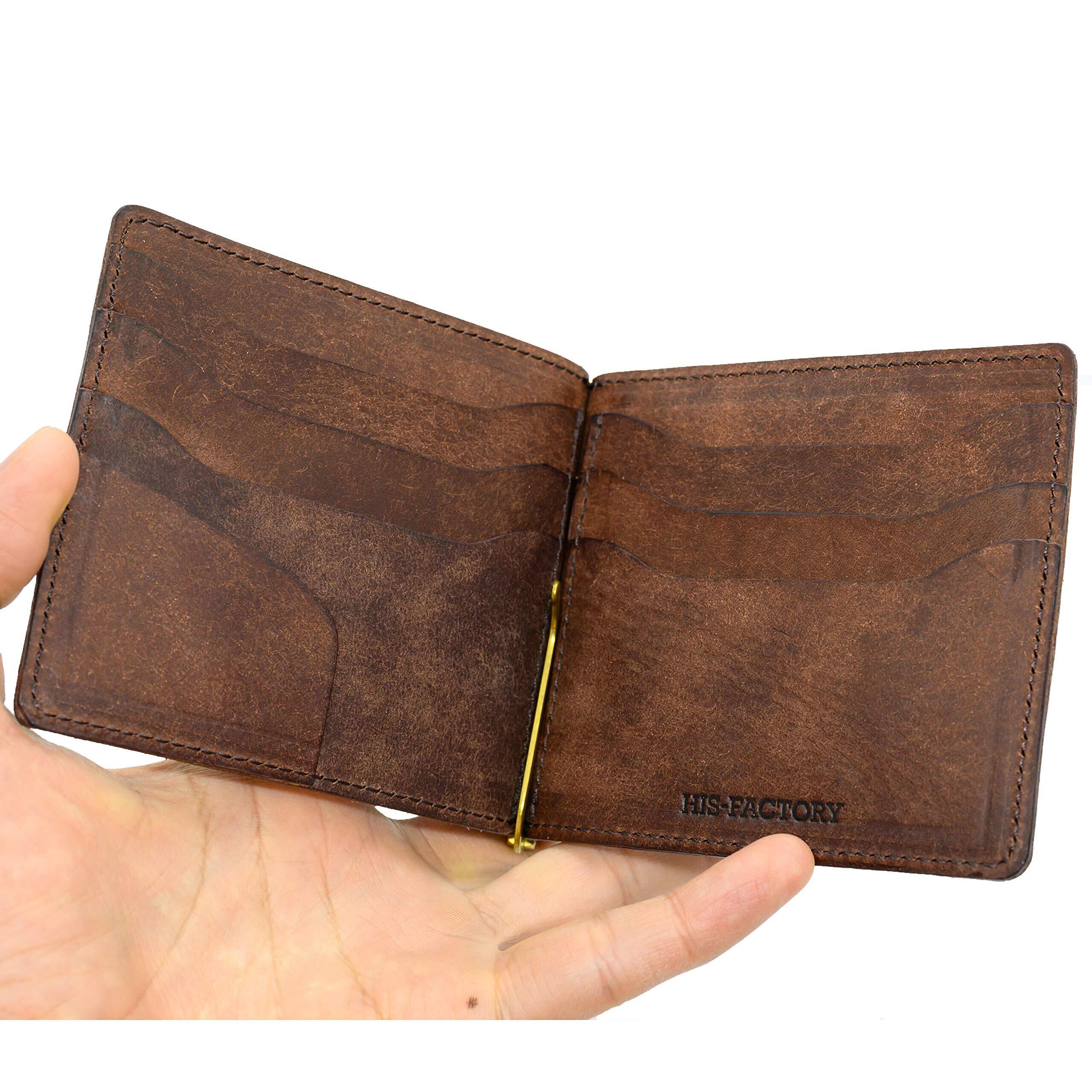 [ヒズファクトリー] マネークリップ プエブロ 本革 メンズ レディース 日本製 職人手作り (02.タバコ)