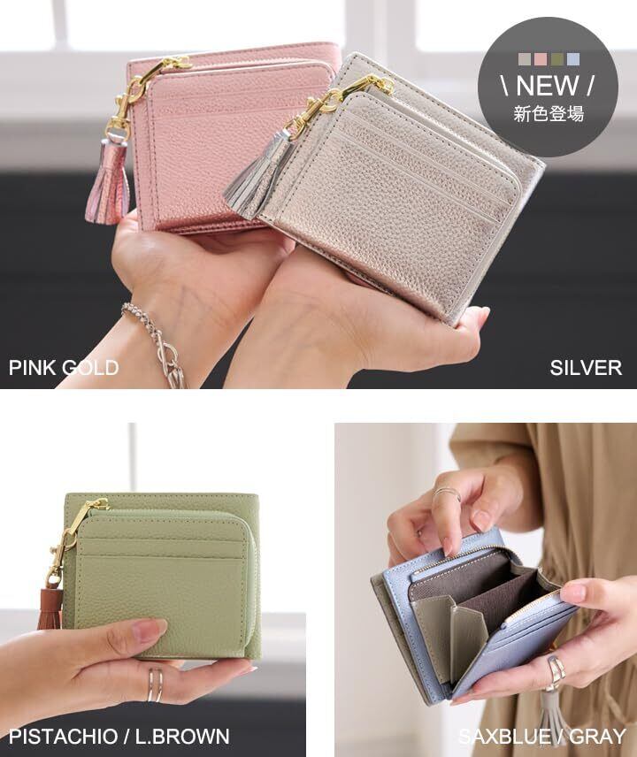 LIZDAYS/デザイン性と機能性が共存、タッセル付き二つ折り財布 革本来の良さが実感できるシンプルなデザイン。 女性の手にもスッと収まる小さめのサイズ感ながら大容量で使いやすい。 カードポケットは合計10枚収納可能で、お札入れも2ポケットになっており、 レシートやお札の種類によって分けられる。 小銭入れも大きく開くL字ファスナーでたくさん入ります! シボ感のある柔らかな肌さわりもポイントです。 取り外し可能なタッセル付き! こだわりの本革を使用したLIZDAYSだけのシリーズ◎ 手に馴染みやすく男性にも女性にも持ちやすい 丈夫で柔軟性があるので使いやすく、使えば使うほど、自分だけの味わい深いアイテムに。