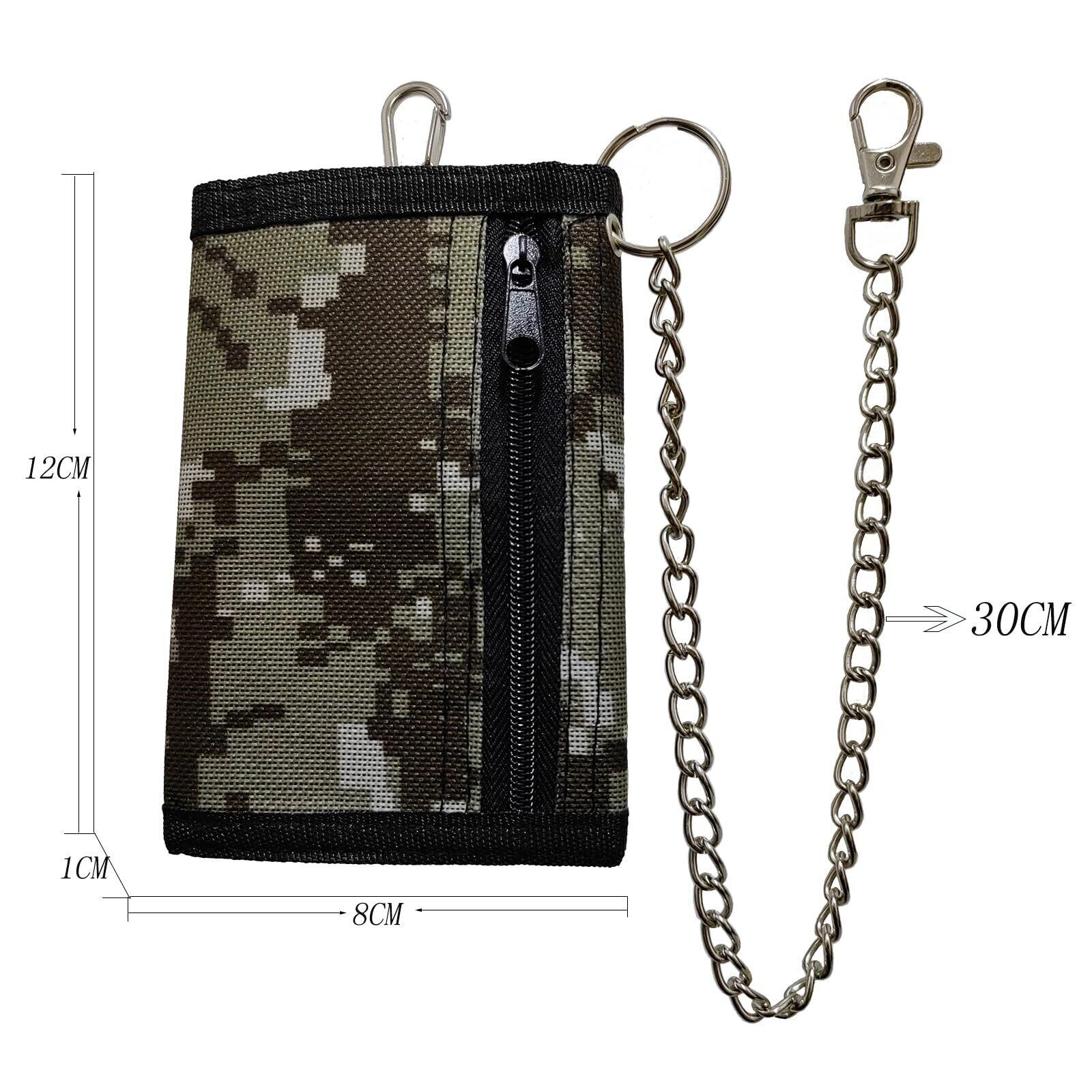 【持ち運びに便利】 コンパクトで迷彩柄、ネービーグリーンの三つ折り財布、メタルチェーンが財布の紛失を効果的に防ぎ、財布の安全を守ります。キーホルダーをリュックに付けて、公共交通機関に乗る時、カードをかざして、とても便利です。遠足に出かける時、財布を紛失する心配はありません。男子高校生にとっては、とても実用的な財布です