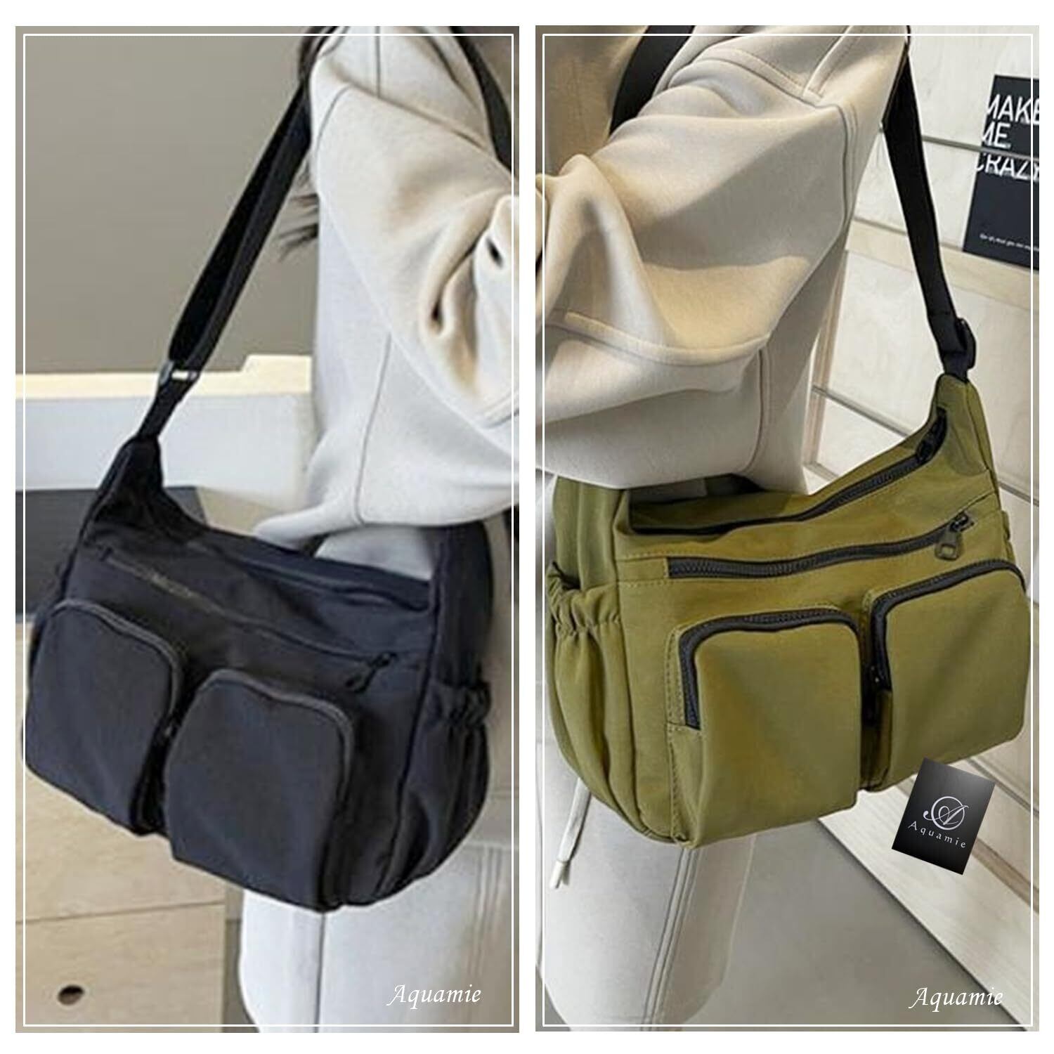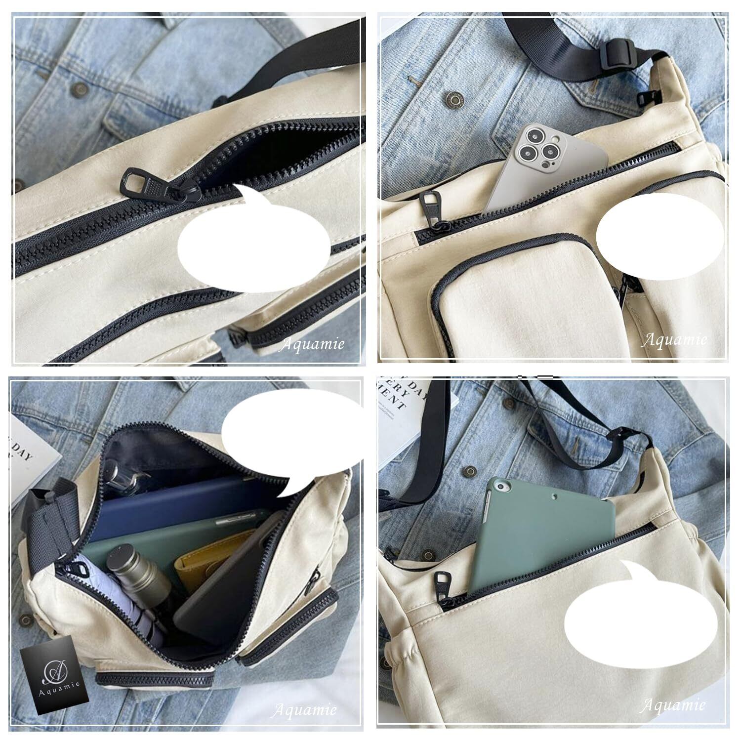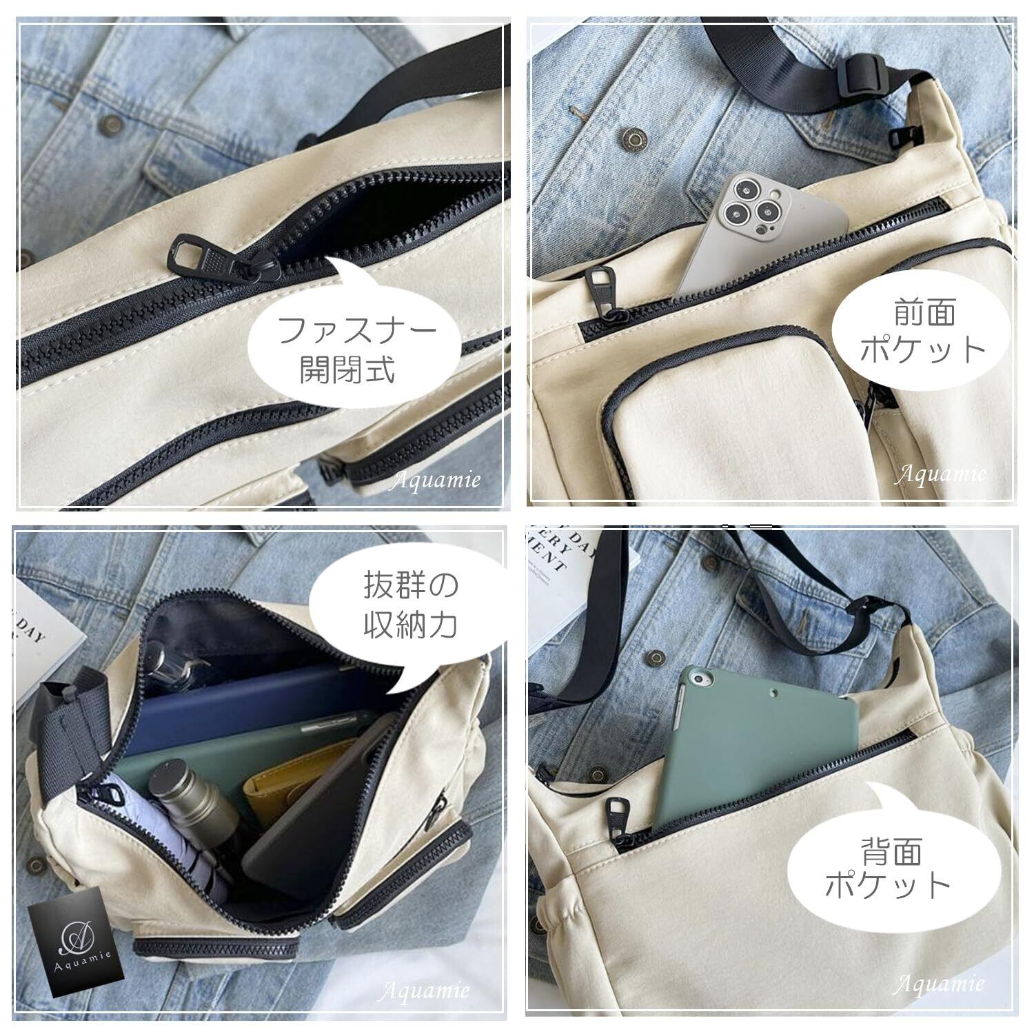 【特価商品】[Aquamie] クロスボディ バッグ 斜めがけバッグ ナイロン 肩掛け ショルダー ポケット多い 横長 コンパクト