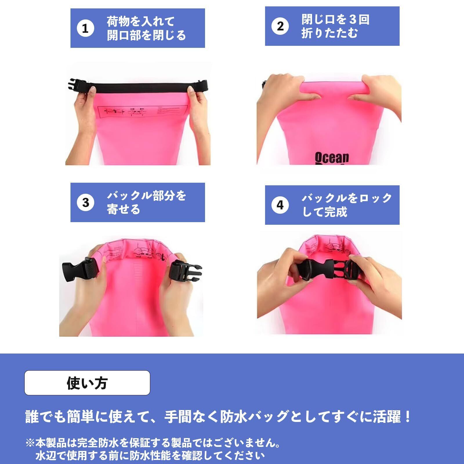 【究極の防水ドライバッグ】プロが認める耐久性と機能美を追求した、あなたのアウトドアライフを変える一品 アウトドアアクティビティを心から楽しむために、本当に信頼できる防水バッグをお探しではありませんか?私たちが開発した防水ドライバッグは、他社製品とは一線を画す品質と機能性で、あなたの大切な荷物を確実に守ります。 ■ 圧倒的な耐久性を実現する500DPVCダブルステッチ製法 最大の特徴は、他社製品では採用されていない「500DPVCとダブルステッチ」の組み合わせです。一般的なドライバッグは薄い素材にシングルステッチで縫製されているため、使用を重ねるうちに生地の引き裂けや縫い目のほつれが発生しがちです。 しかし、当社の防水ドライバッグは、厚みと強度に優れた500DPVCを採用し、さらにプロ仕様のダブルステッチ縫製を施すことで、圧倒的な耐久性を実現しました。特にストラップ付け根部分は補強加工により、重い荷物を入れても引き裂ける心配がありません。 この品質の高さは、プロのアウトドアガイドやマリンスポーツインストラクターからも高い評価を得ており、過酷な環境下での使用にも耐える信頼性を誇ります。 ■ 選べる6色×5サイズの豊富なバリエーション カラーバリエーションは、BLACK、BLUE、ORANGE、PINK、YELLOW、GREENの6色をご用意。シックなブラックから、視認性抜群のビビッドカラーまで、あなたのスタイルやシーンに合わせて自由にお選びいただけます。 特にORANGE、YELLOW、PINKなどの鮮やかなカラーは、アウトドアでの安全性も考慮し、遠くからでも一目で分かる高視認性を実現。緊急時の発見率向上にも貢献し、グループ活動での識別も容易です。 サイズ展開は、コンパクトな2Lから大容量の20Lまで、5つのサイズをラインナップ: - 2L:貴重品や小物の収納に最適 - 5L:日帰りレジャーやちょっとしたお出かけに - 10L:デイハイクや海水浴に - 15L:1泊2日のキャンプや登山に - 20L:長期アウトドアや本格的なアクティビティに ■ 用途に合わせた2WAY&リュック対応のマルチキャリー 持ち運びスタイルも、アクティビティに合わせて自由自在。2L~15Lのモデルには、長さ調節可能な肩掛けショルダーストラップが付属し、肩掛けにも手提げにも対応する2WAY仕様となっています。 20Lモデルには、ダブルショルダーストラップが付属しており、リュックとして背負うことが可能。両手を自由に使いたいハイキングやトレッキング、サイクリングなどのアクティビティに最適です。 ■ あらゆるアウトドアシーンで活躍する防水性能 当社の防水ドライバッグは、以下のような様々なシーンで大活躍します: - マリンスポーツ:カヌー、カヤック、SUP、ヨット、サーフィン - ウォーターアクティビティ:海水浴、プール、川遊び、釣り - 陸上アウトドア:キャンプ、登山、ハイキング、トレッキング - スポーツ:サイクリング、ランニング、スキー、スノーボード - 日常使い:雨の日の通勤・通学、ジム通い 口部を丸めてバックルで固定するだけの簡単操作で、外部からの水の侵入を確実に防ぎます。ただし、完全な水中での使用(潜水など)は避けてください。 ■ メンテナンスフリーで長持ちする特殊素材 特殊なPVC素材の採用により、汚れや塩分が付着しても水洗いで簡単にお手入れ可能。海水や泥汚れもサッと拭くだけでOK。特別なメンテナンスは不要で、購入時の品質を長期間キープできます。 暑い夏でも寒い冬でも、素材の柔軟性が失われることなく安心してお使いいただけます。また、使用しない時はコンパクトに折りたたんで収納できるため、場所を取りません。 ■ 業界最高水準の1年間無料交換 品質への絶対的な自信の証として、購入から1年以内の破損については無料交換をしています。これは他社にはない充実のアフターサービスで、お客様に安心してアウトドアをお楽しみいただくための取り組みです。 万が一の際も、迅速かつ丁寧に対応させていただきますので、長期間にわたって安心してご使用いただけます。 ■ プロフェッショナルが認める品質 500DPVCとダブルステッチの組み合わせによる堅牢性は、プロのアウトドアガイドやマリンスポーツインストラクターからも高い評価を得ています。過酷な環境下での使用にも耐える信頼性は、あなたの大切な荷物を確実に守ります。 ■ 使い方は簡単4ステップ 1. 開口部を揃える 2. 開口部を折りたたむ(3~4回) 3. バックルでロック 4. 完了! この簡単な操作で、確実な防水性能を発揮します。 --- アウトドアライフをより豊かに、より安心に。当社の防水ドライバッグは、あなたの冒険を全力でサポートします。他社製品との違いを、ぜひ実感してください。品質、機能性、デザイン、アフターサービス。すべてにおいて妥協のない、究極の防水ドライバッグをお届けします。 あなたの次のアドベンチャーのパートナーとして、この防水ドライバッグをお選びください。きっと期待以上の満足をお約束いたします。