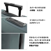 耐久性のある材質を使用しているため、スーツケースが傷つくことや汚れることからしっかり守ります。万が一の雨などからも大切な荷物を守るレインカバーとしても活躍します。旅行や出張の際に、安心してご使用いただけるのが大きな魅力です!