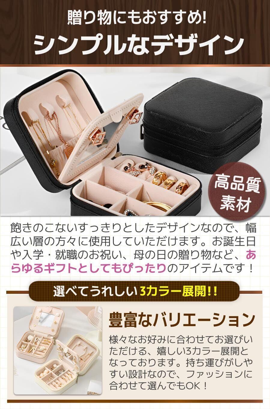 【商品特徴】①高品質PUレザー製:重厚感たっぷりのPUレザーで高級感を演出/②便利なミラー付き:ジュエリーの装着やメイク直しに!/③ファスナータイプ:中のジュエリーが滑り落ちる心配なし!/④仕切りは取り外しOK:収納方法に合わせて柔軟に対応!