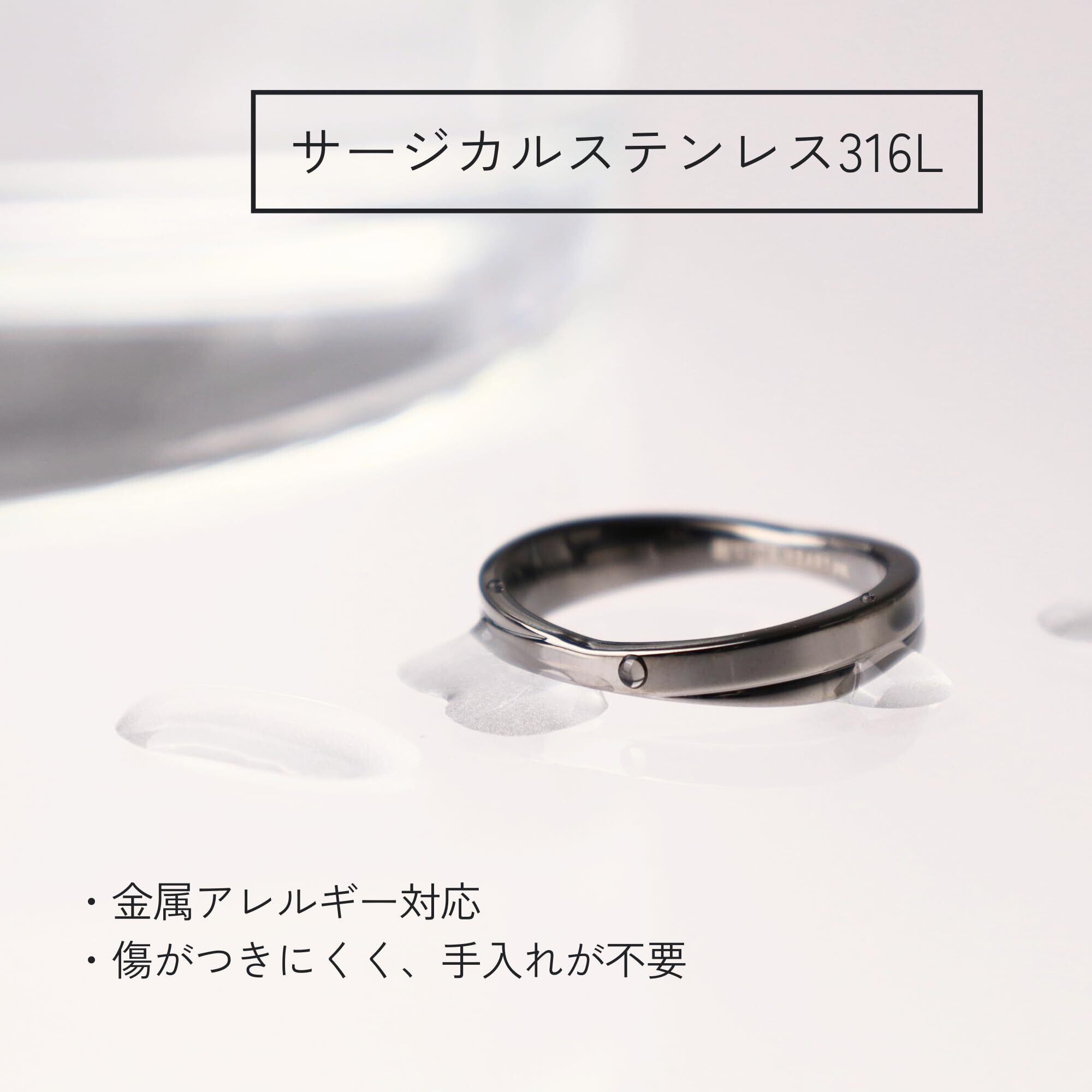 このリングは、金属アレルギーを気にする方にも最適なサージカルステンレス316Lで作られています。軽やかな付け心地と高い耐久性を実現し、普段使いや特別な occasion にも安心してご使用いただけます。