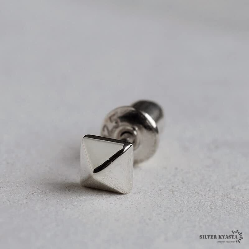 [silver KYASYA]スタッズピアス シルバー925 ピラミッドピアス メンズ スタッドピアス シルバー スクエア シンプル 金属アレルギー対応 片耳 1点