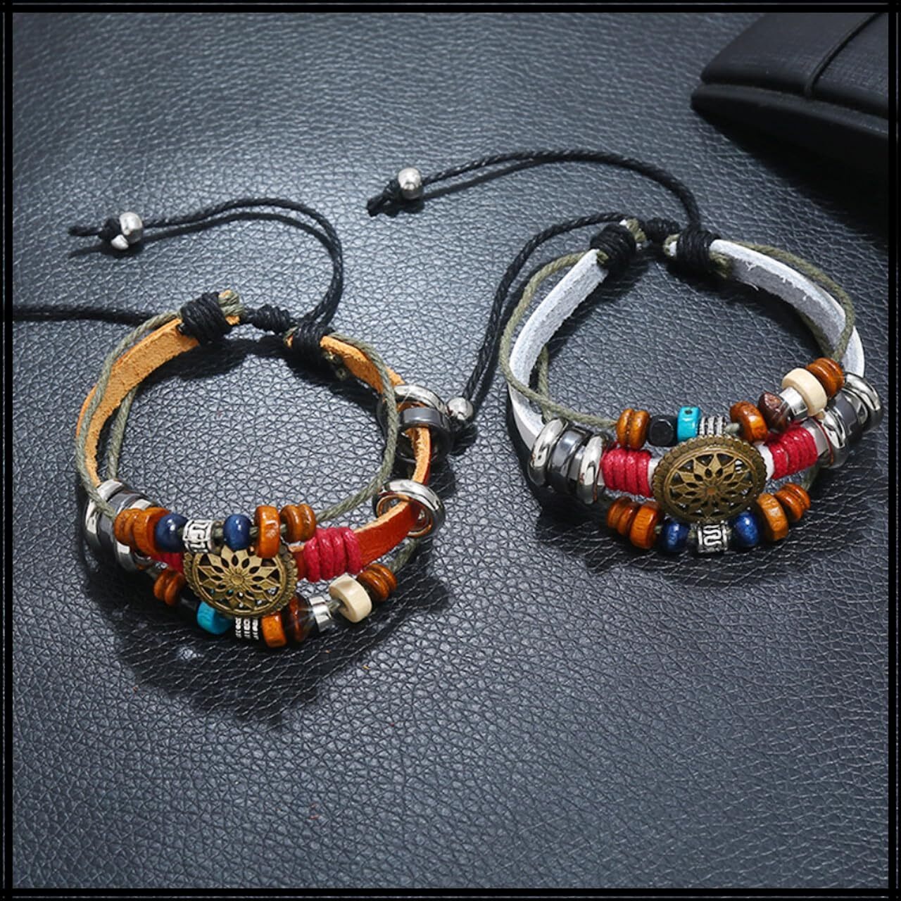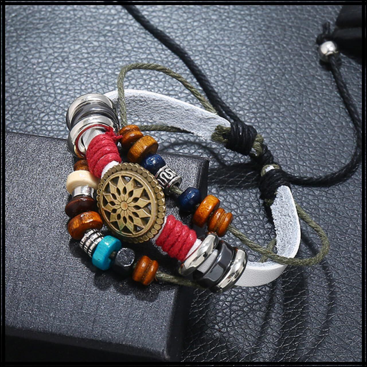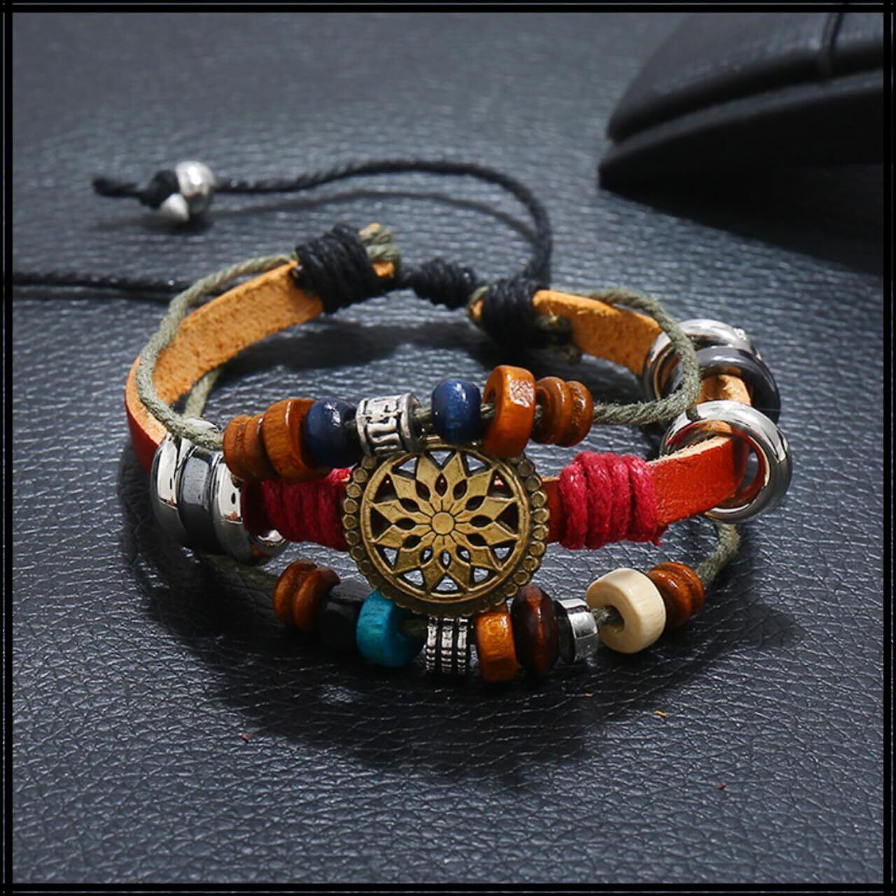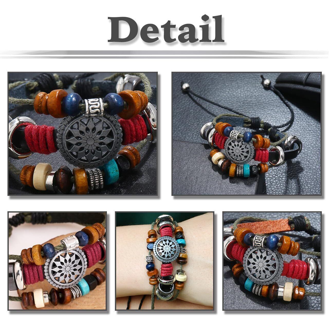 このブレスレットは、カジュアルからフォーマルなスタイルまで幅広く対応できるデザインです。編み込みのディテールとネイティブな模様が、魅力的なルックを演出し、あなたの日常のファッションに新たなアクセントを加えます。特にアウトドアイベントや友人との集まりにぴったりです。