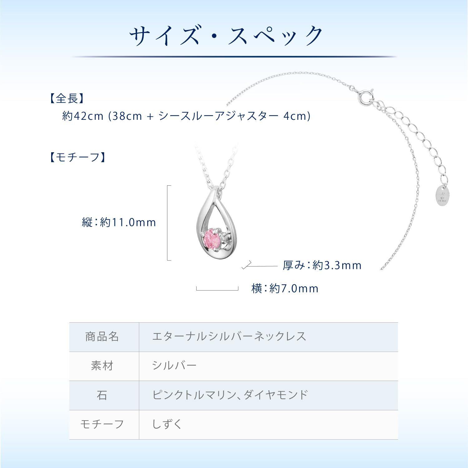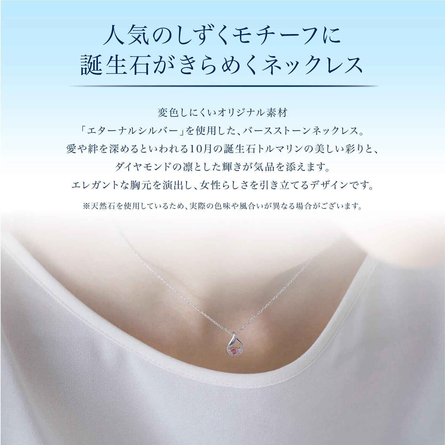 変色しにくいオリジナル素材「エターナルシルバー」を使用したネックレス。人気のしずくモチーフに10月の誕生石のトルマリンとダイヤモンドが煌めき、清楚で上品な印象に。ベーシックなデザインながらもほどよい存在感があり、コーディネートのアクセントになるデザインです。※天然石を使用しているため、実際の色味や風合いが異なる場合がございます。