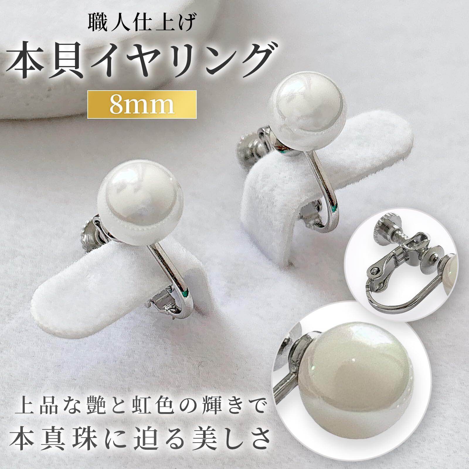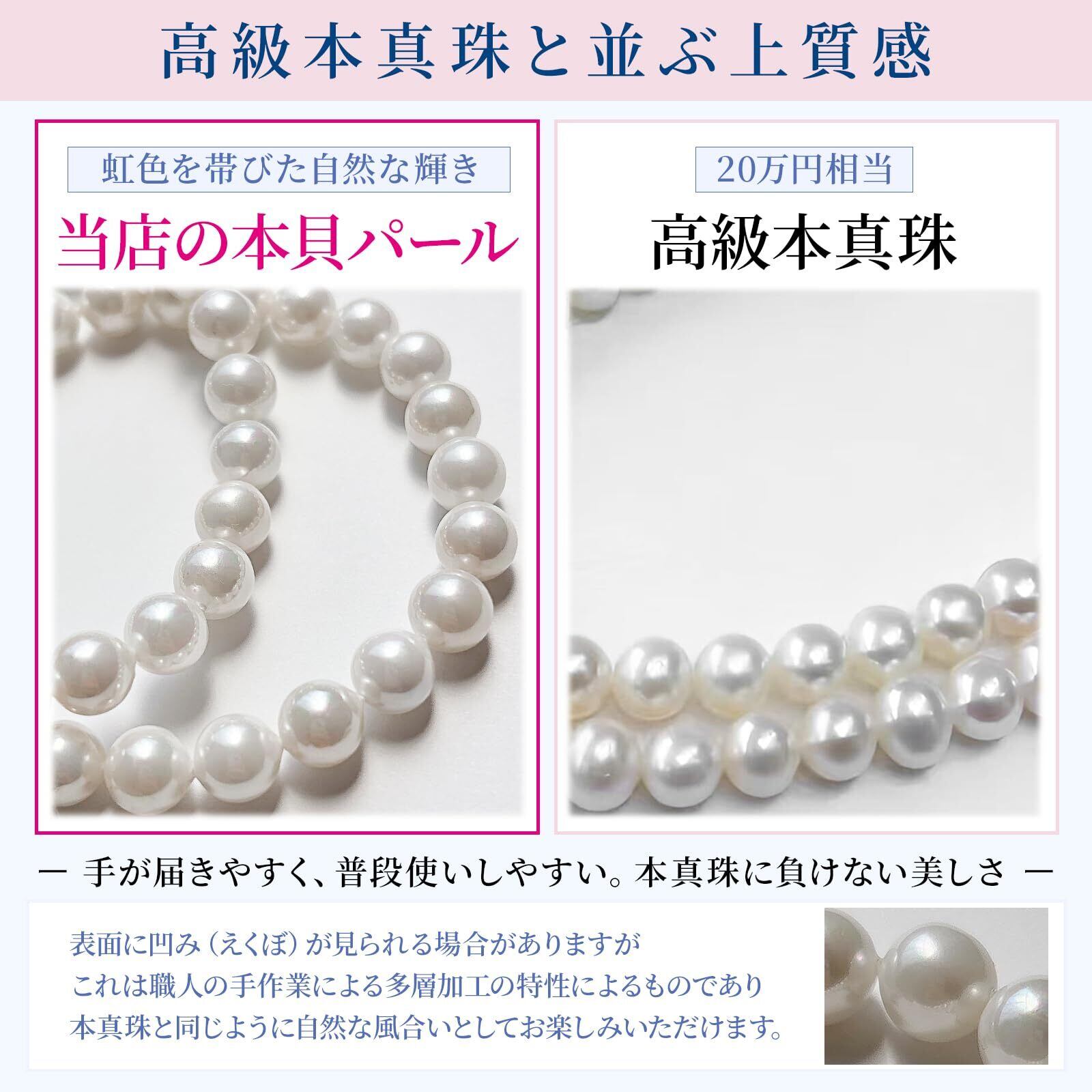 【本貝パールの上品な輝き】8mmの本貝パールを使用し、真珠に迫る自然な艶と虹色の輝きを実現。職人の手による丁寧な仕上げで高級感あふれるジュエリーです。