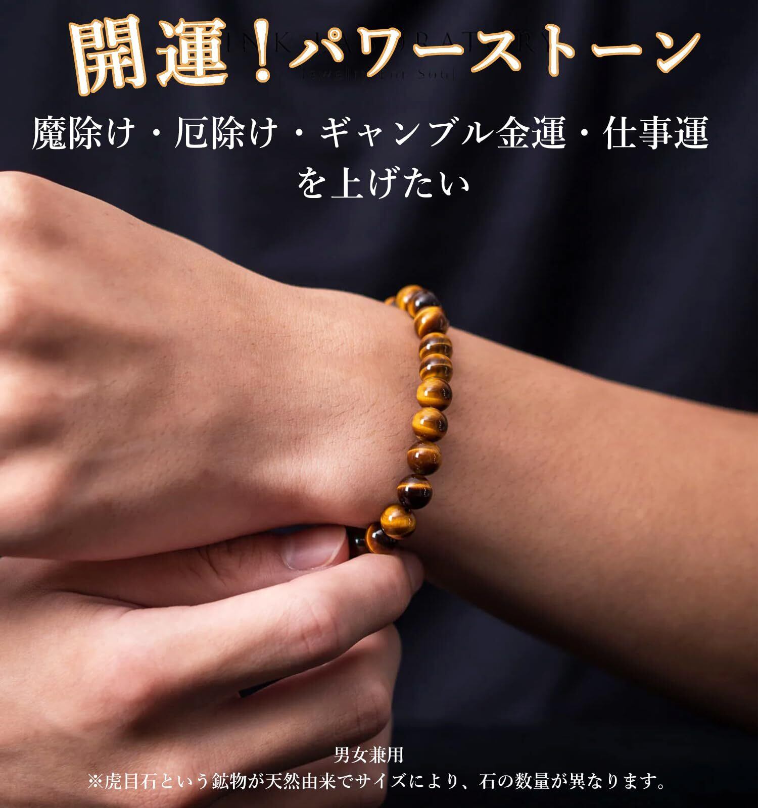 『[MASHISO] パワーストーン ブレスレット』は、イエロータイガーアイを使用した特別なブレスレットです!その美しい色合いが手元に華やかさを与え、気分を高めます。また、金運や仕事運をUPさせる効果が期待できるため、ビジネスシーンにぴったりです。心の平和をもたらし、浄化や魔除け、災除けのお守りとしても効果的なアイテムです。