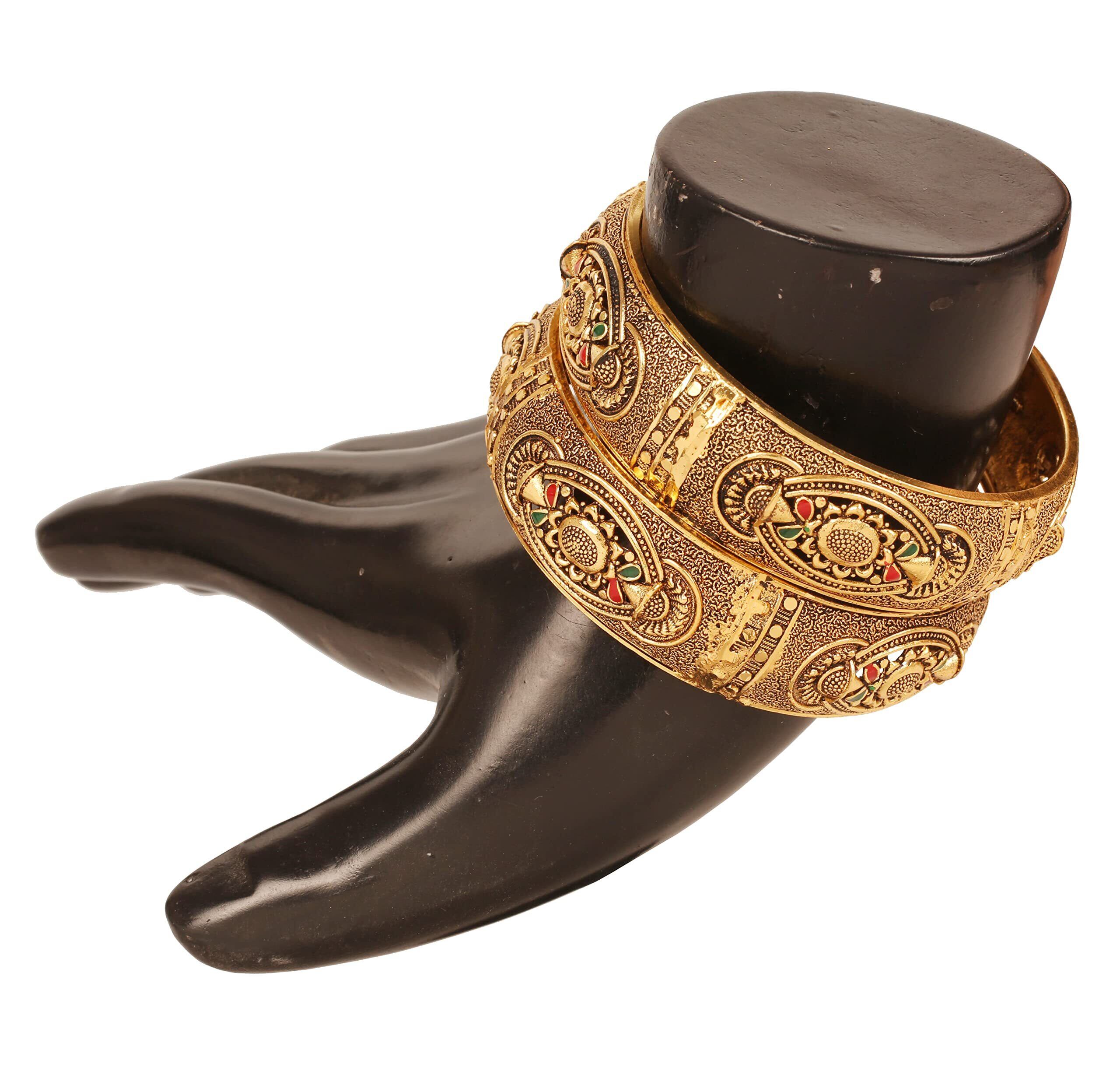 【数量限定】Touchstone Indian Bollywood Current Trends South Inspired Mesh Work Minakari Enamel Designer Jewelry Thick Bracelets Bangle Kada Set of 2. In Antique Gold ToneforWomen。