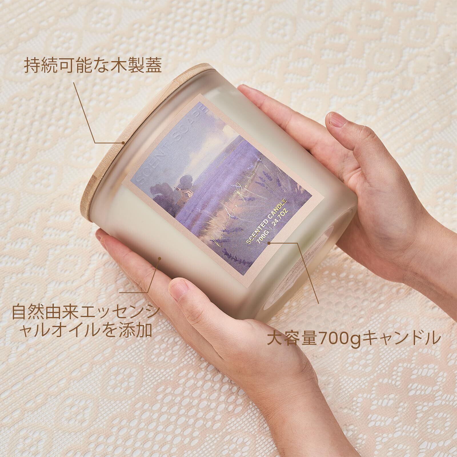 【新着商品】M&SENSE アロマキャンドル 大容量 3芯 700g 120時間 ラベンダーの香り ユーカリミント 長時間燃焼 木蓋付き おしゃれ 香薰蜡烛 ガラスジャー ソイキャンドル