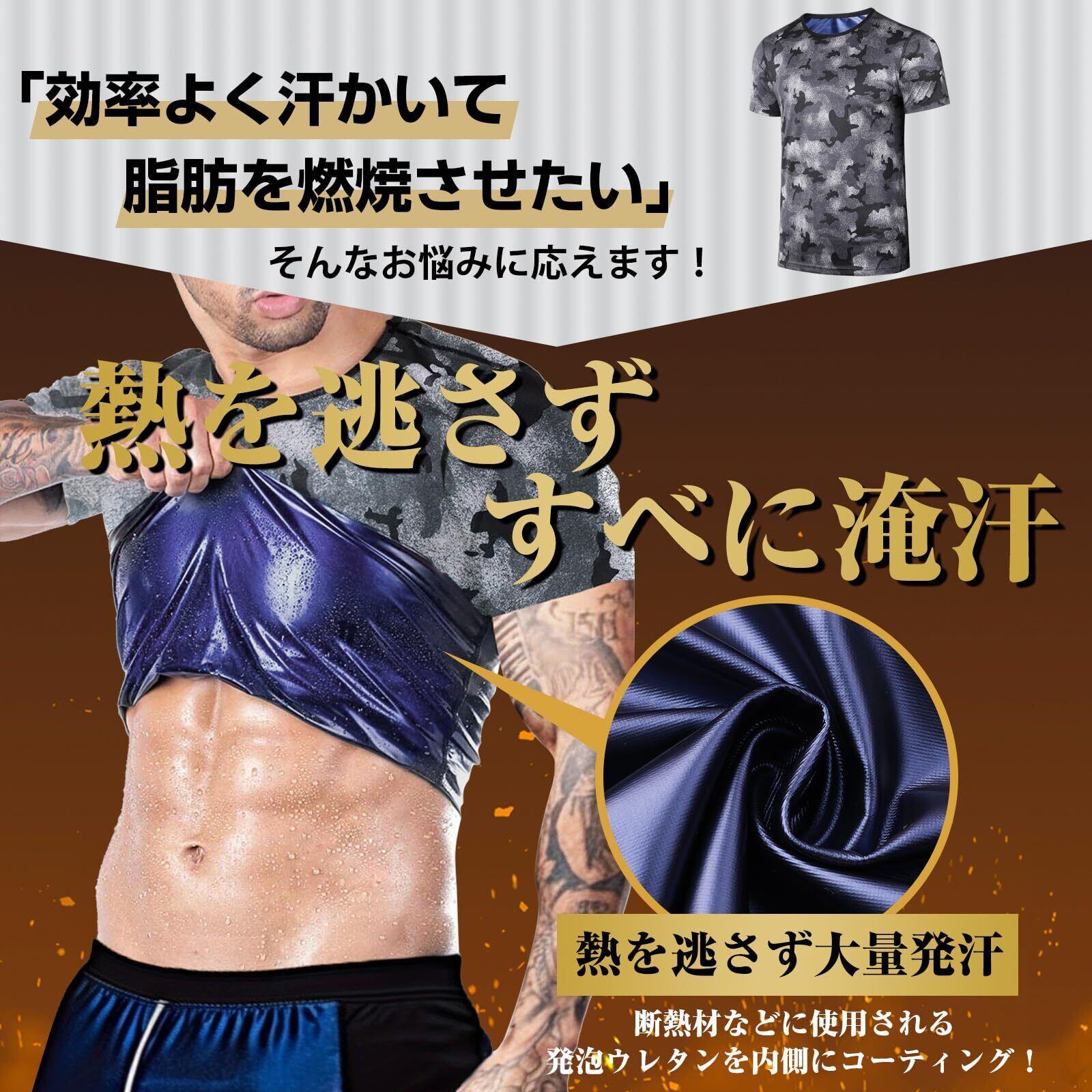 [シュアナウ] サウナシャツ 半袖 メンズ サウナスーツ ヒートシャツ 発汗 迷彩柄 インナー ダイエット スポーツウェア ランニングウエア 洗濯可 減量用 ウォーキング 脂肪燃焼 大きいサイズ