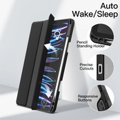 JETech iPad Pro 11 インチ ケース (2022/2021/2020/2018モデル) Pencil収納可能透明バックカバー 薄型 スタンド 衝撃吸収 タブレットカバー オートウェイク/スリープ機能 (ブラック)
