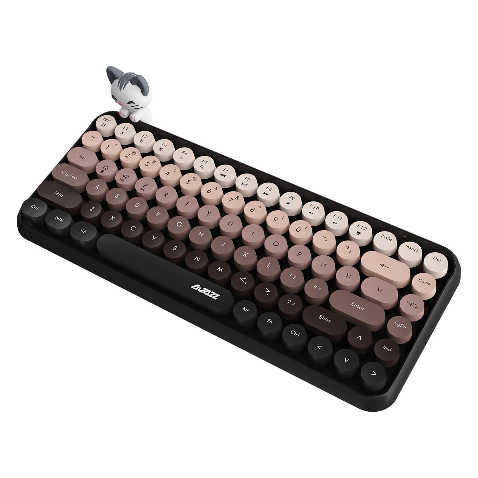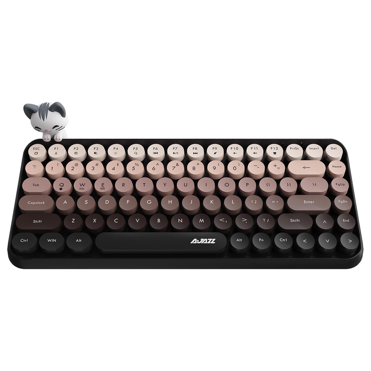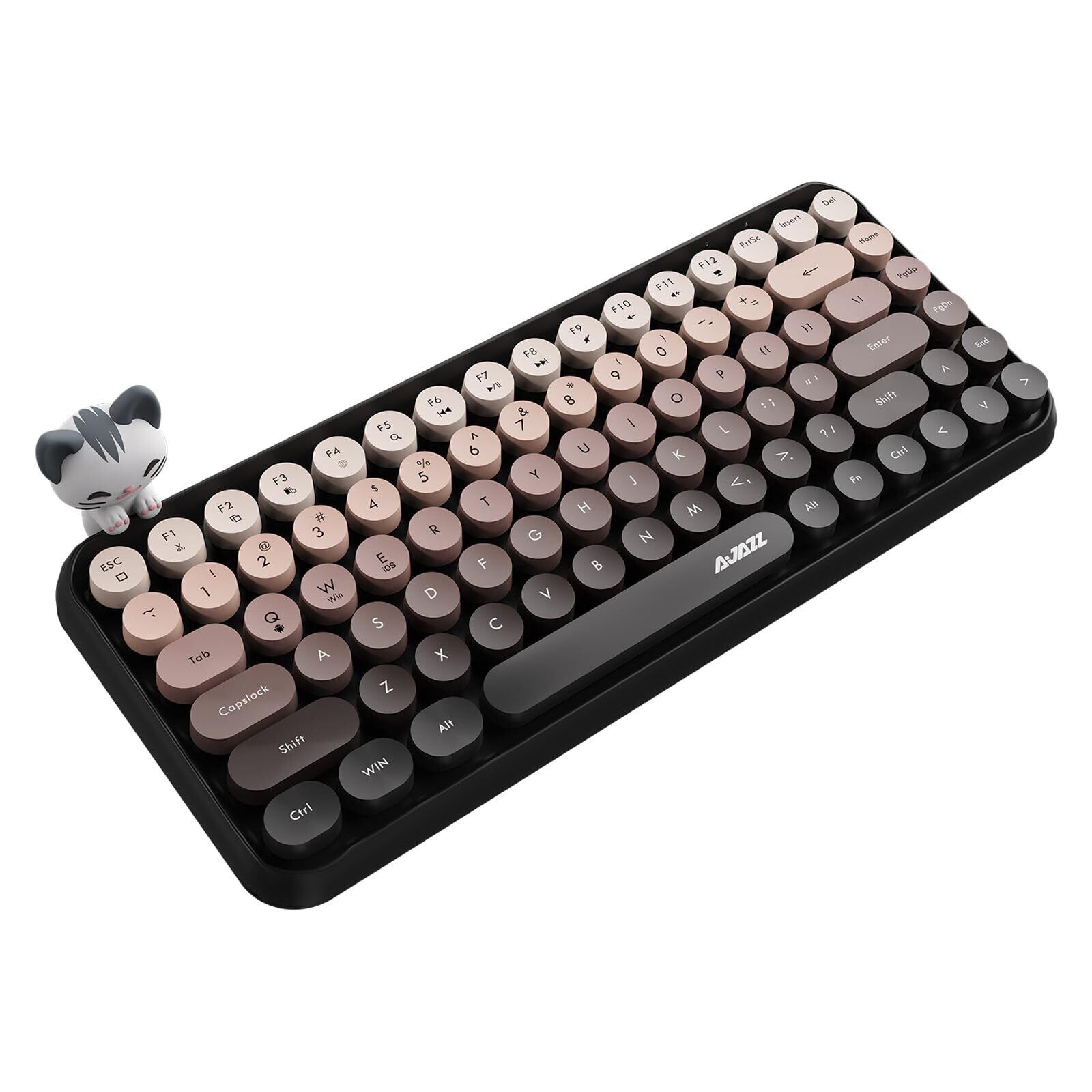 AJAZZ 308i タブレット用ワイヤレスBluetoothキーボード 磁気猫付き コンパクト84キー かわいい タイプライター風 丸型キーキャップ 女の子と子供向けのギフト 英語配列 (グラデーションブラック)