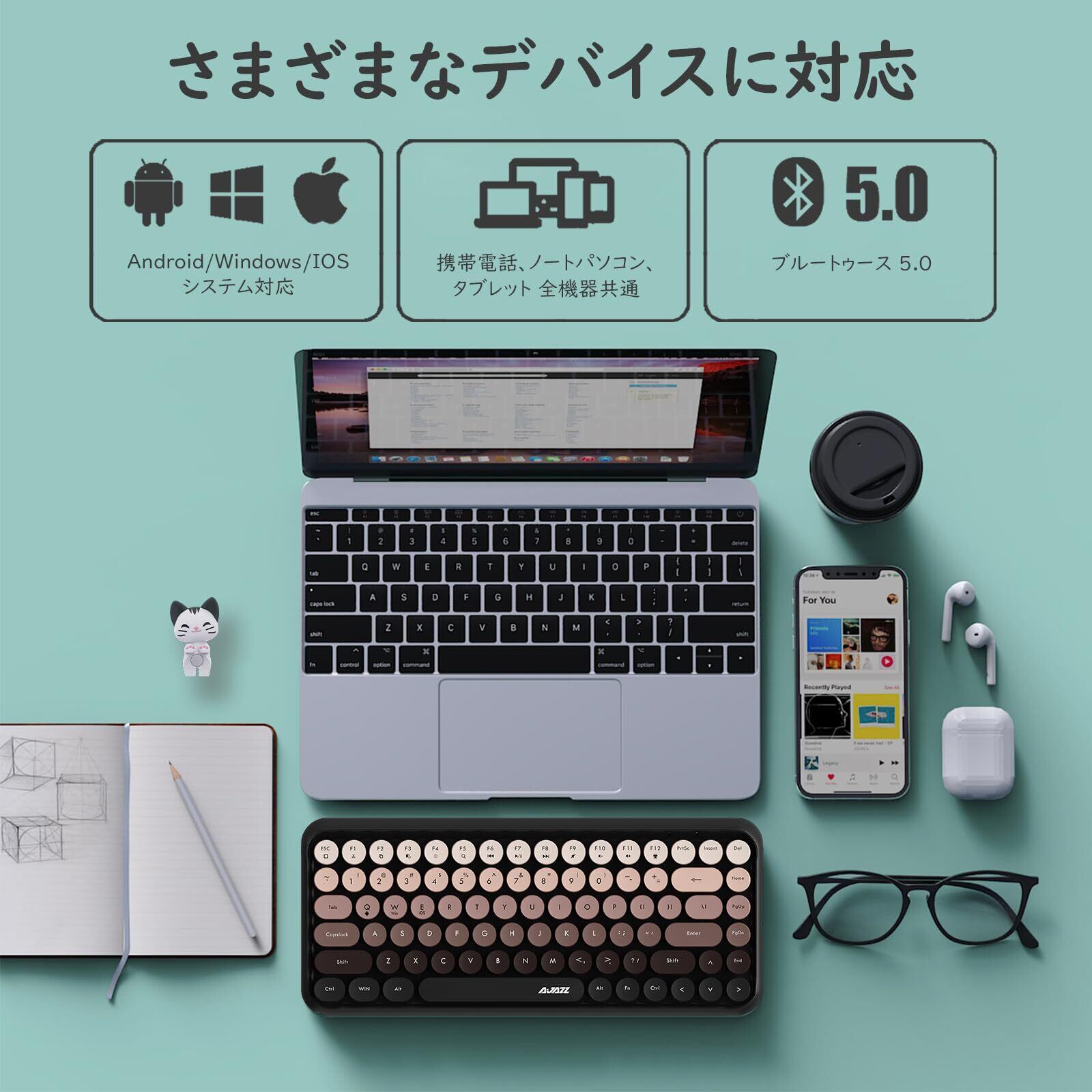 ・特徴:コンパクト84キー、丸型キーキャップ、タイプライター風デザイン、可愛い見た目