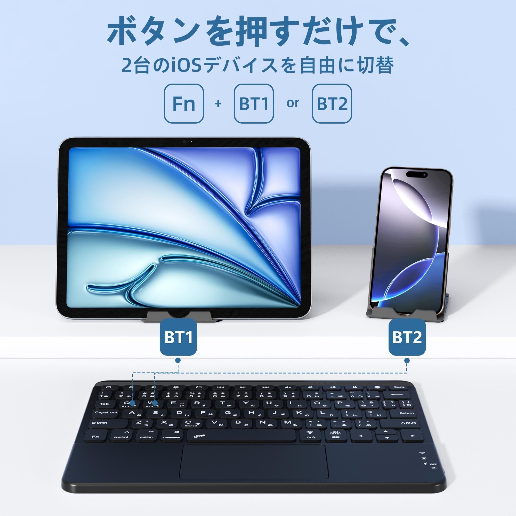2台のiOSデバイス間でスムーズに切り替えができます。タブレットとスマートフォンを同時に接続できるため、作業を効率化できます。タッチパッドの操作も快適で、マウスなしでもスムーズに操作が可能です。