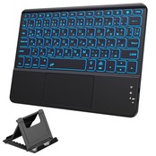 【在庫処分】HETHOT ipad用 キーボード- 7色バックライト Bluetooth JIS日本語配列 スタンド付き タッチパッド搭載 2台のiOSデバイス切り替え可能 タブレット キーボード iPad/iPhone対応 無線 静音 Type-C充電式 薄型 軽量 日本語説明書付き 技通マークを取得済み ブラック