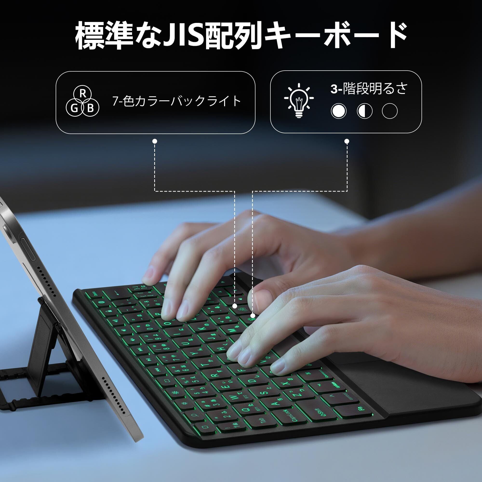 HETHOT ipad用 キーボード- 7色バックライト Bluetooth JIS日本語配列 スタンド付き タッチパッド搭載 2台のiOSデバイス切り替え可能 タブレット キーボード iPad/iPhone対応 無線 静音 Type-C充電式 薄型 軽量 日本語説明書付き 技通マークを取得済み ブラック