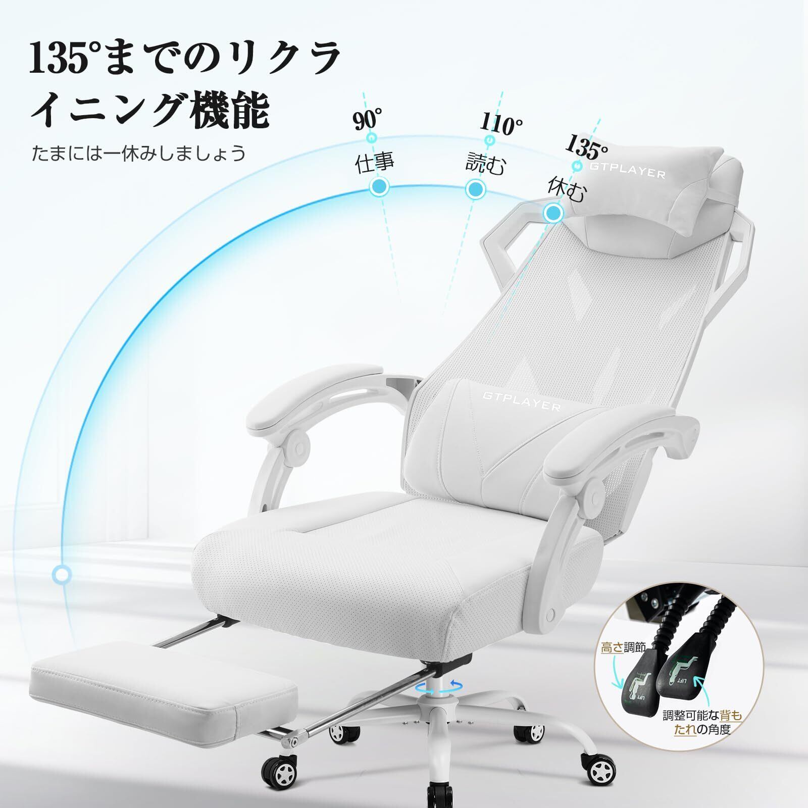 GTRacing ゲーミングチェア 真っ白 疲れない椅子 デスクチェア オフィスチェア オットマン付き ワークチェア リクライニング ハイバック イス『仕事用ゲーミングチェア』ゲーム用チェア フットレスト ハイバック/気孔付き皮革とメッシュ素材/連動型アームレスト (GTPLYERシリーズ Luft310- WHITE)